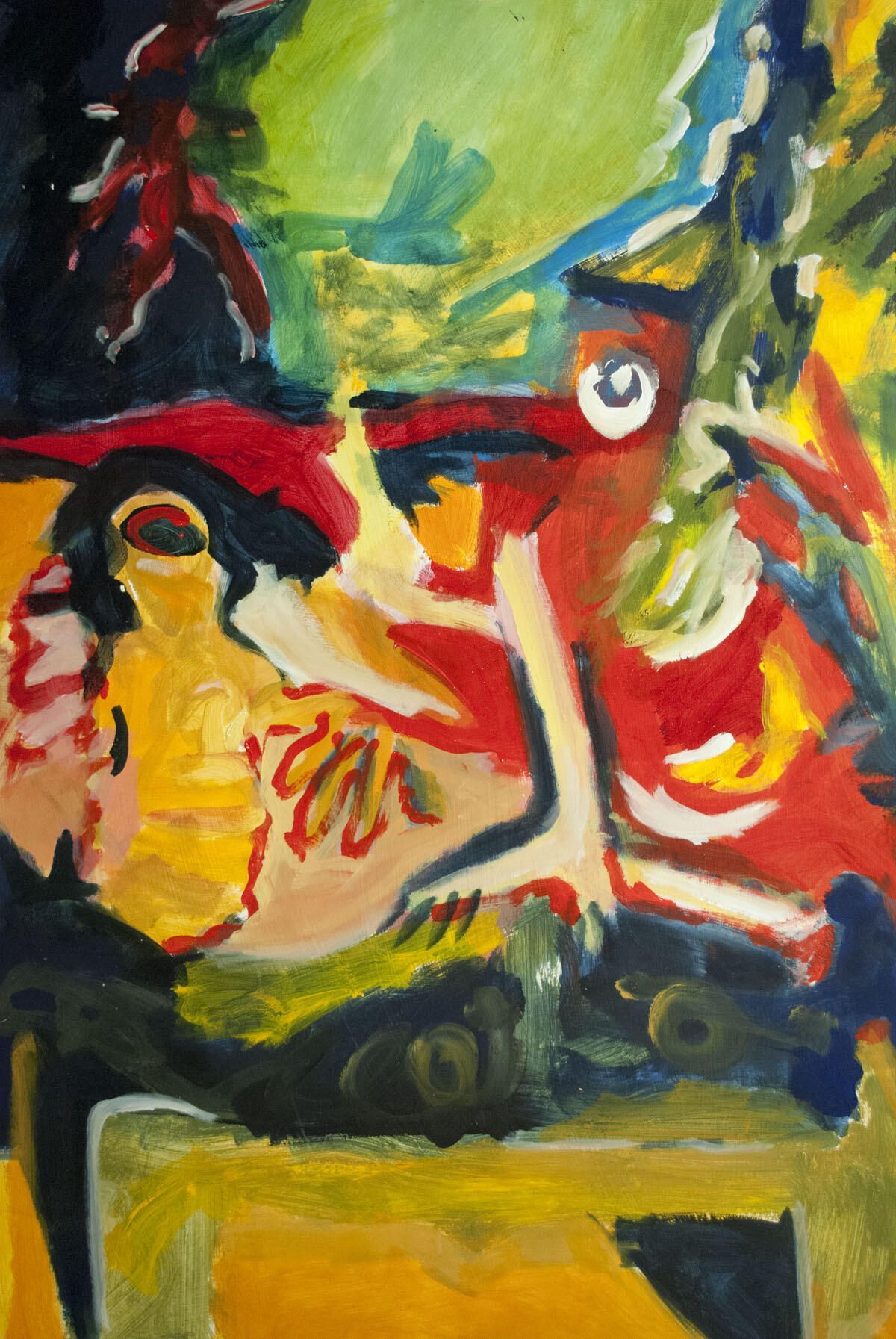 Bleed image, multiple pinholes in corners. Point of paint transfer throughout top of image. Still life. Montserrat series.Inventory