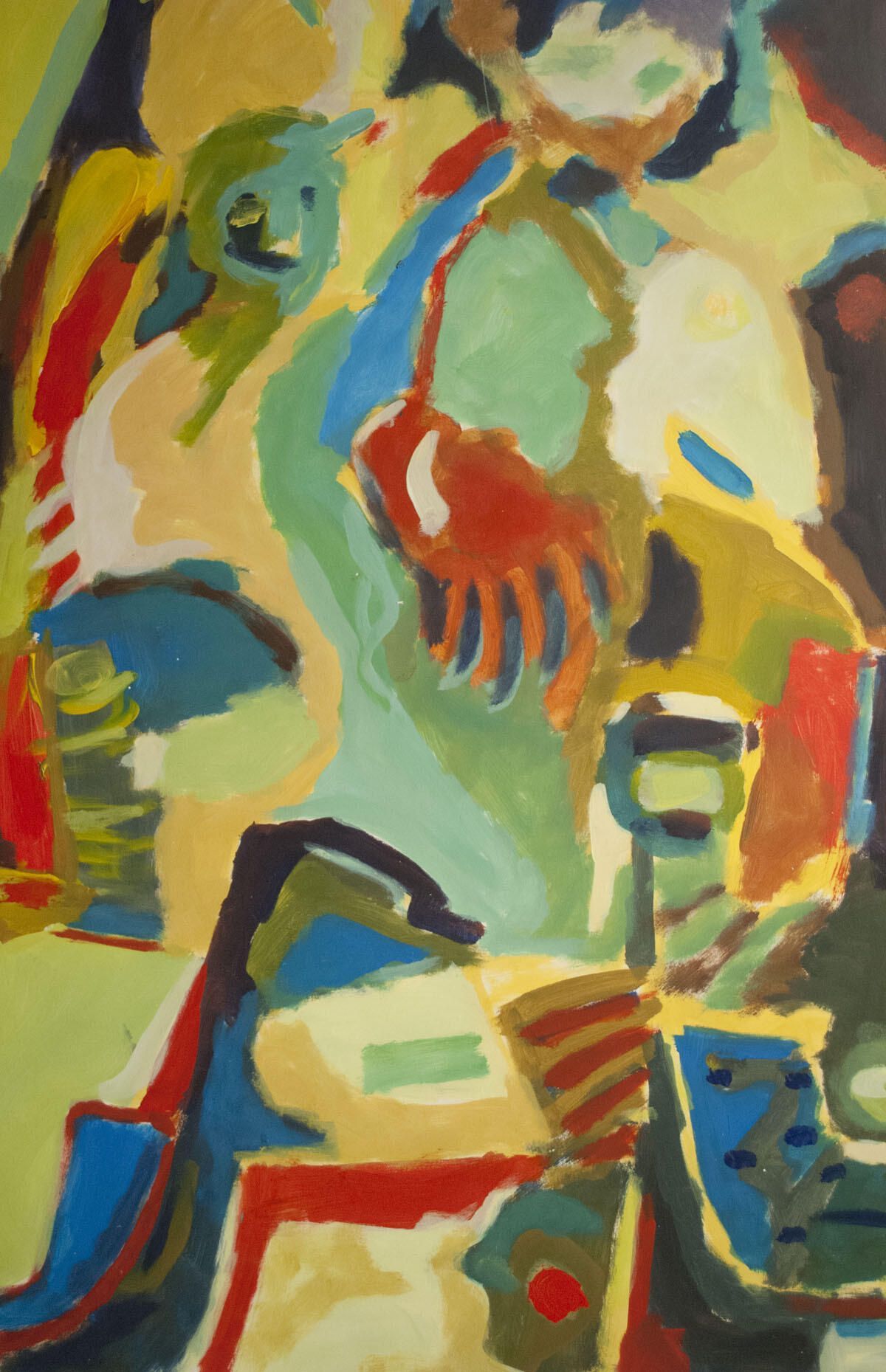Abrasions in borders, multiple paint chips attached to image throughout. Figures.Location