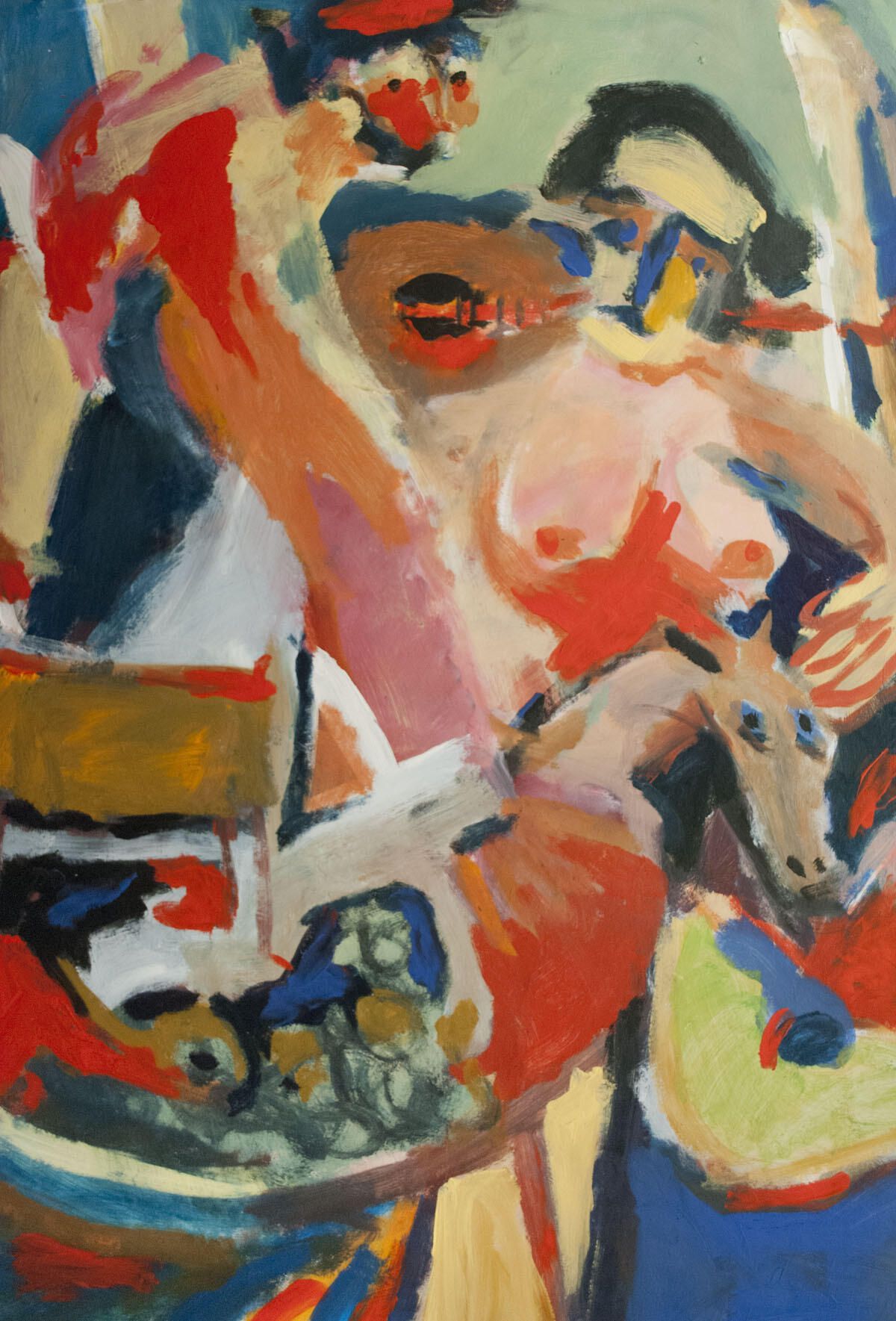 Pinholes in corners of image. Upper right corner torn. Paint chips adhered to image. Two figures. Montserrat series.Location