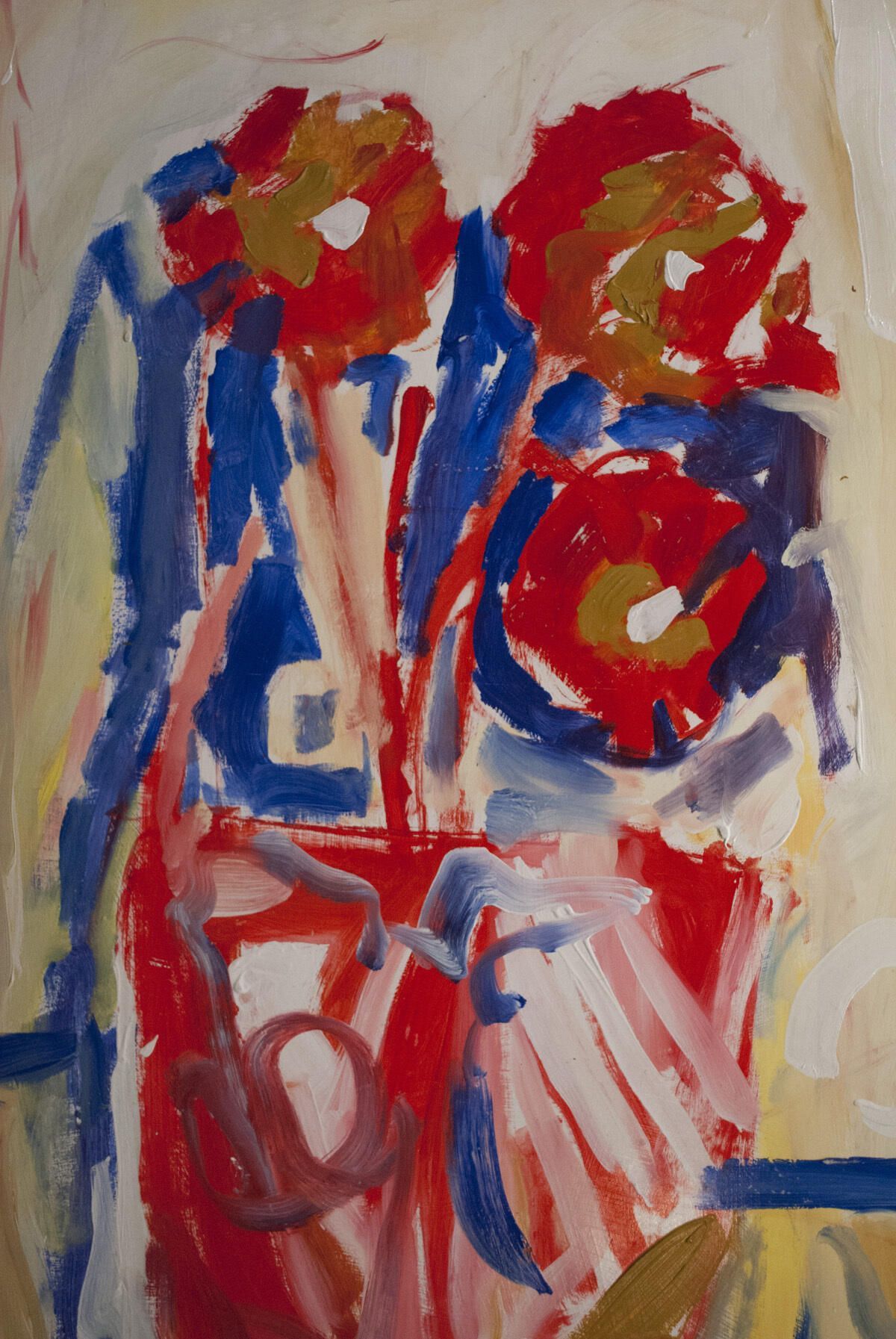 Points of paint and paper transferred onto the surface if image throughout. Abrasions, smudges in borders. Flowers - still life.Location
