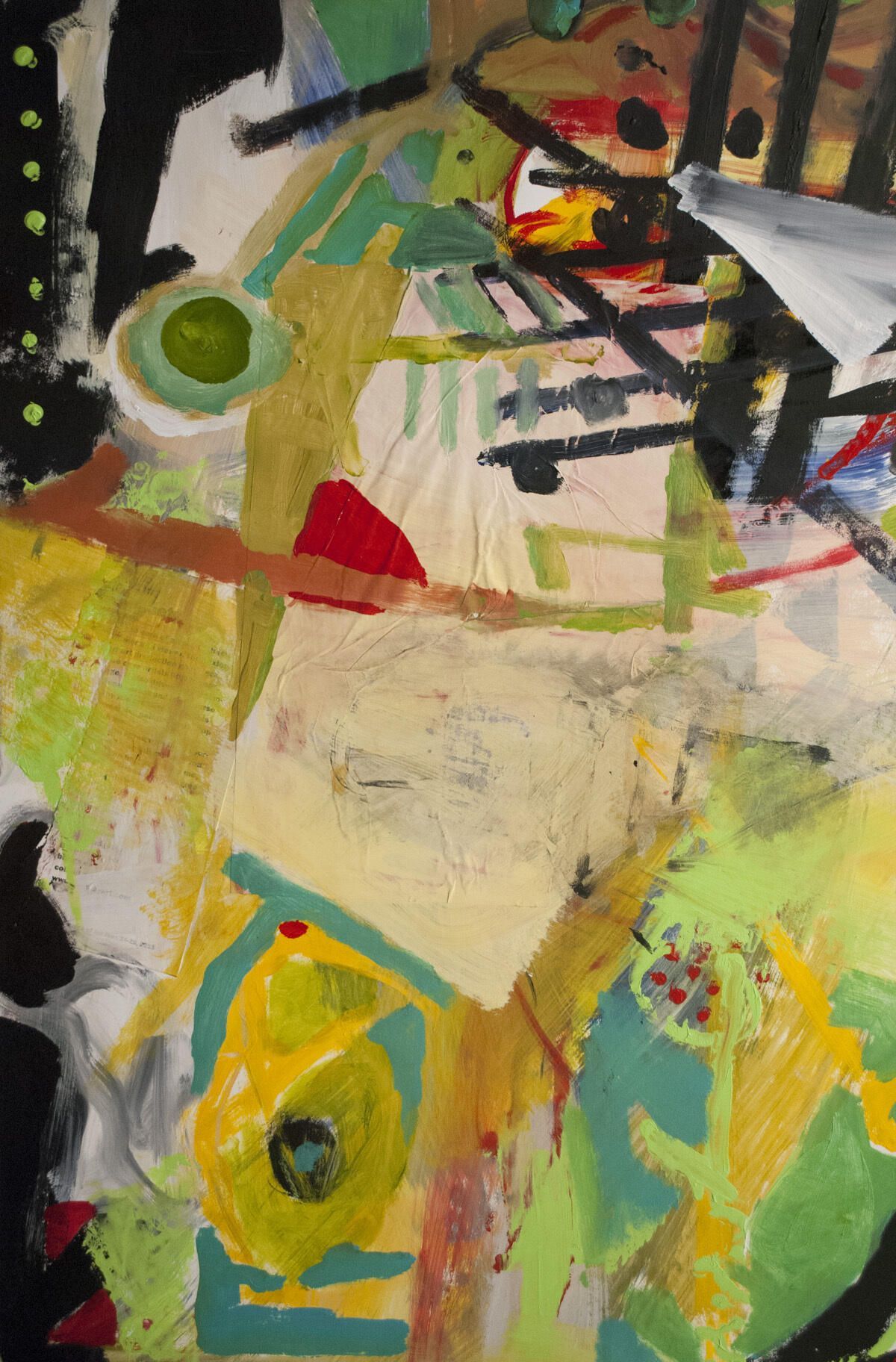 Masking tape adhered in upper-left corner, few smudges in borders. Pinholes in each corner. Image in good condition. Abstract composition.Artwork Details