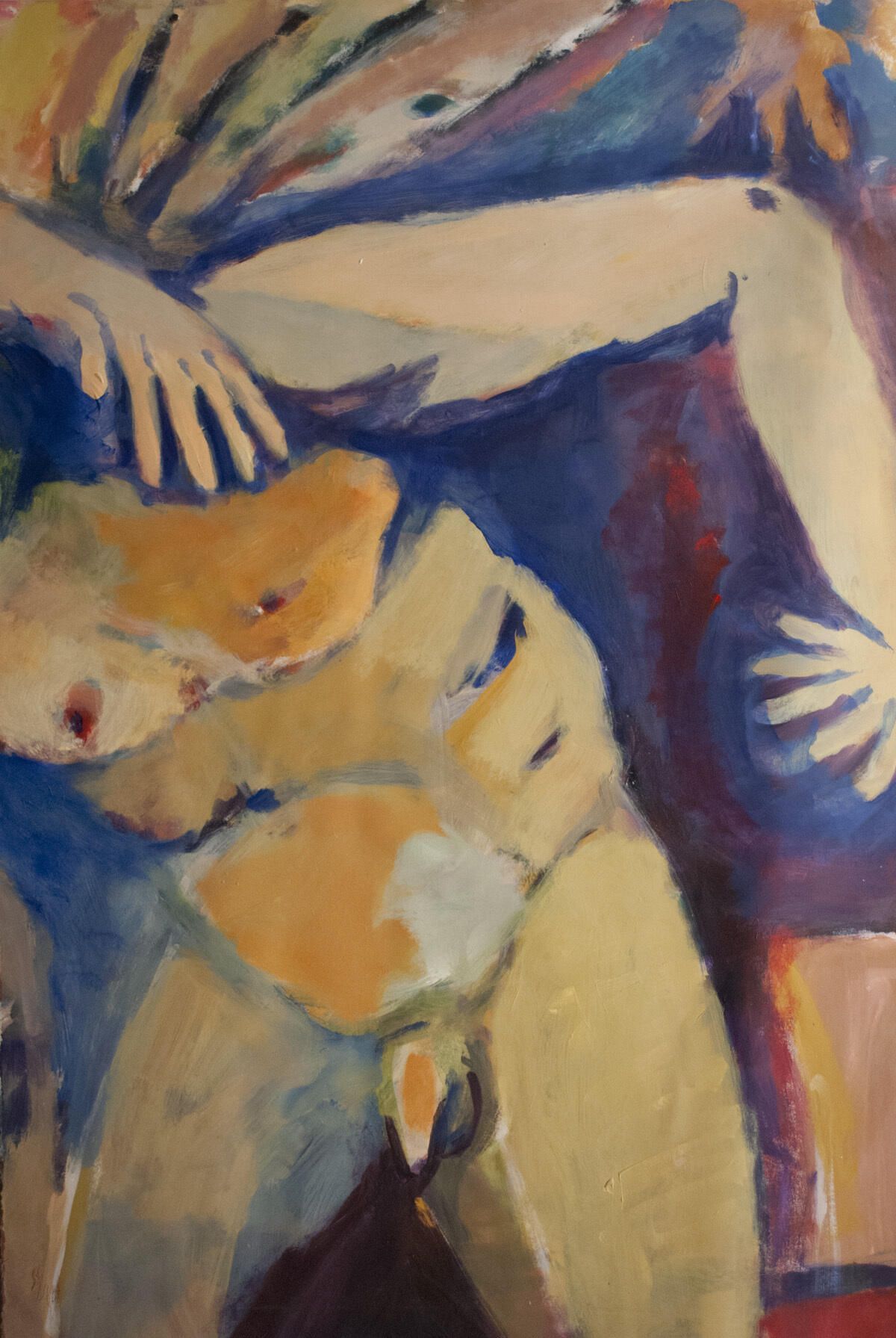 Pinholes is each corner, paper is wrapped length of piece on the right side. Male nude figure.Location