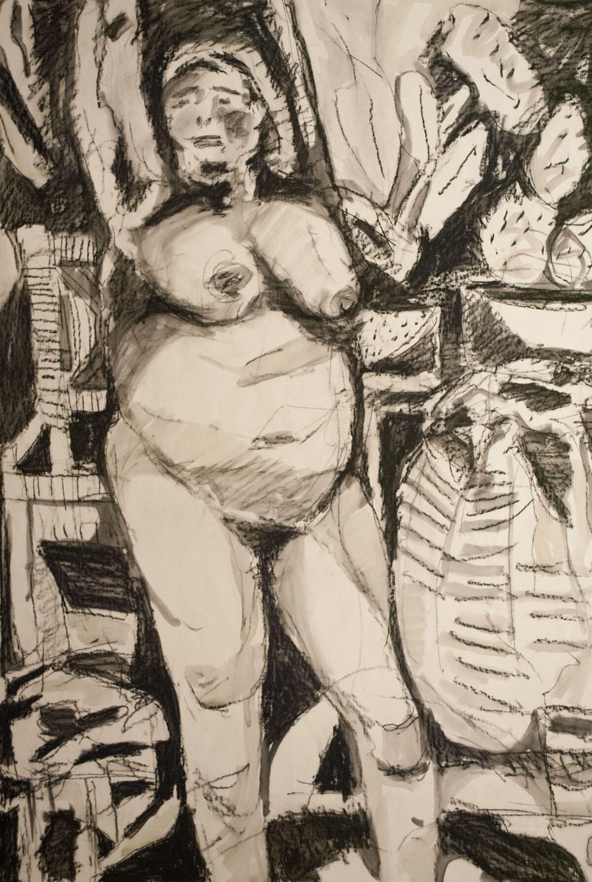 Upper-left and right corners creased, smudges in borders. Image in good condition. Female standing figure. San Miguel series.Dimensions
