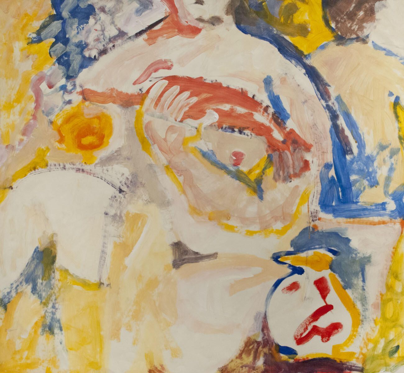 Smudges in borders, some entering image. Pinholes in corners of image. Abrasions and layers of paper removed throughout image. Figure Seated in front of a mirror.Location