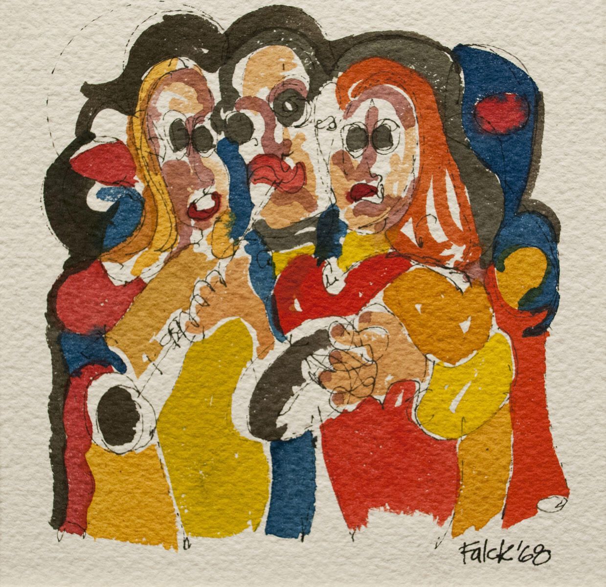Poorly matted with masking tape. Some light smudging in image. Three musicians.Artwork Details