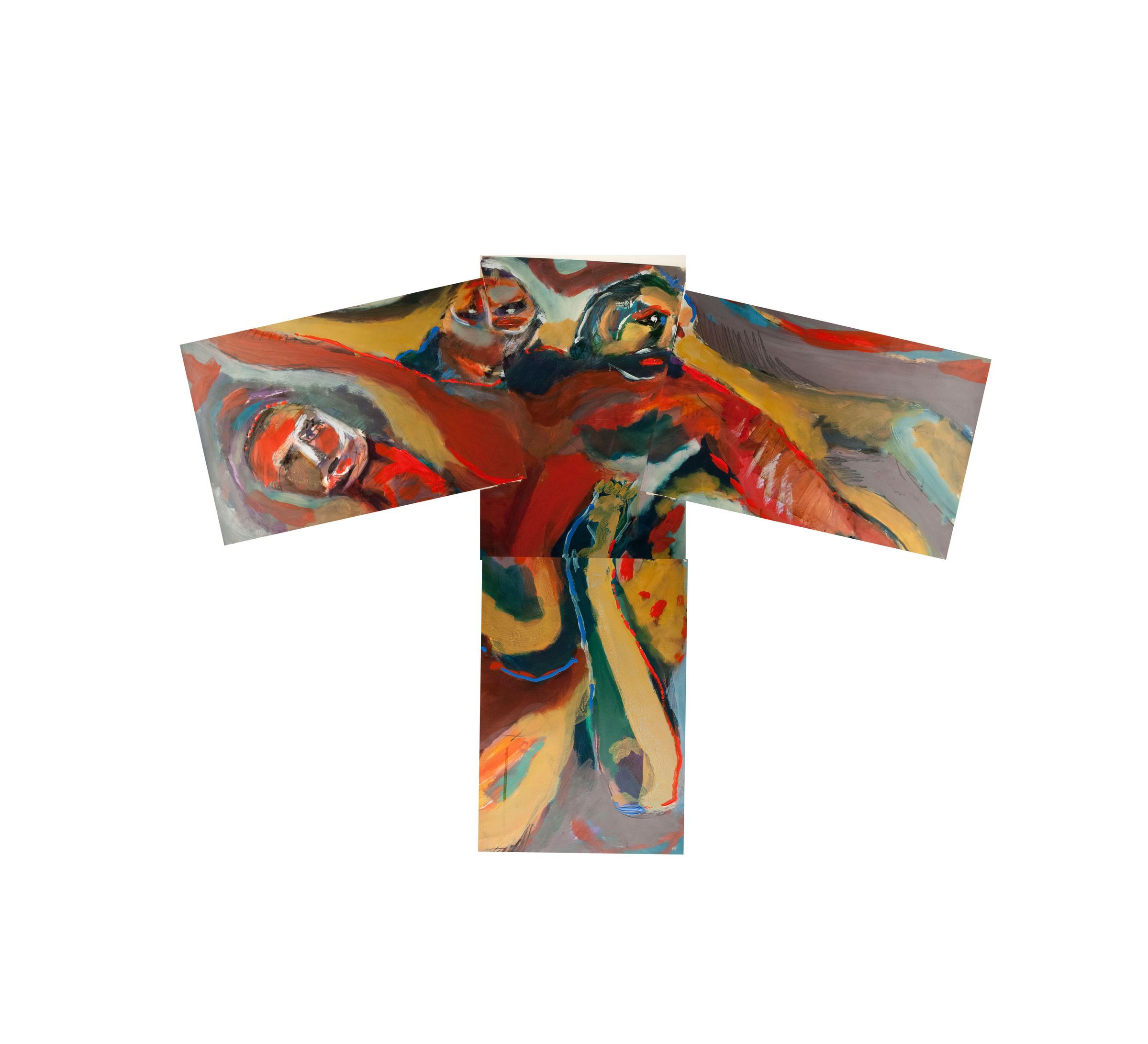 Image covers four sheets, T-shaped. Three figures Pinholes in corners, .b has torn corner. In otherwise good condition.Dimensions