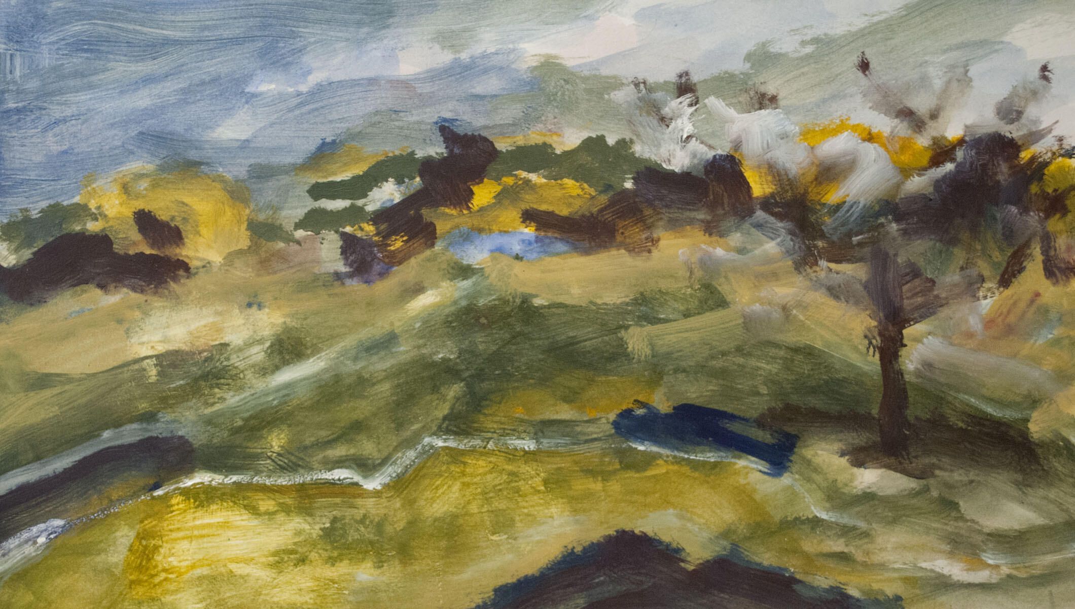 Landscape. Abrasions, tears in borders. Pencil mark going through image in lower right corner.Location