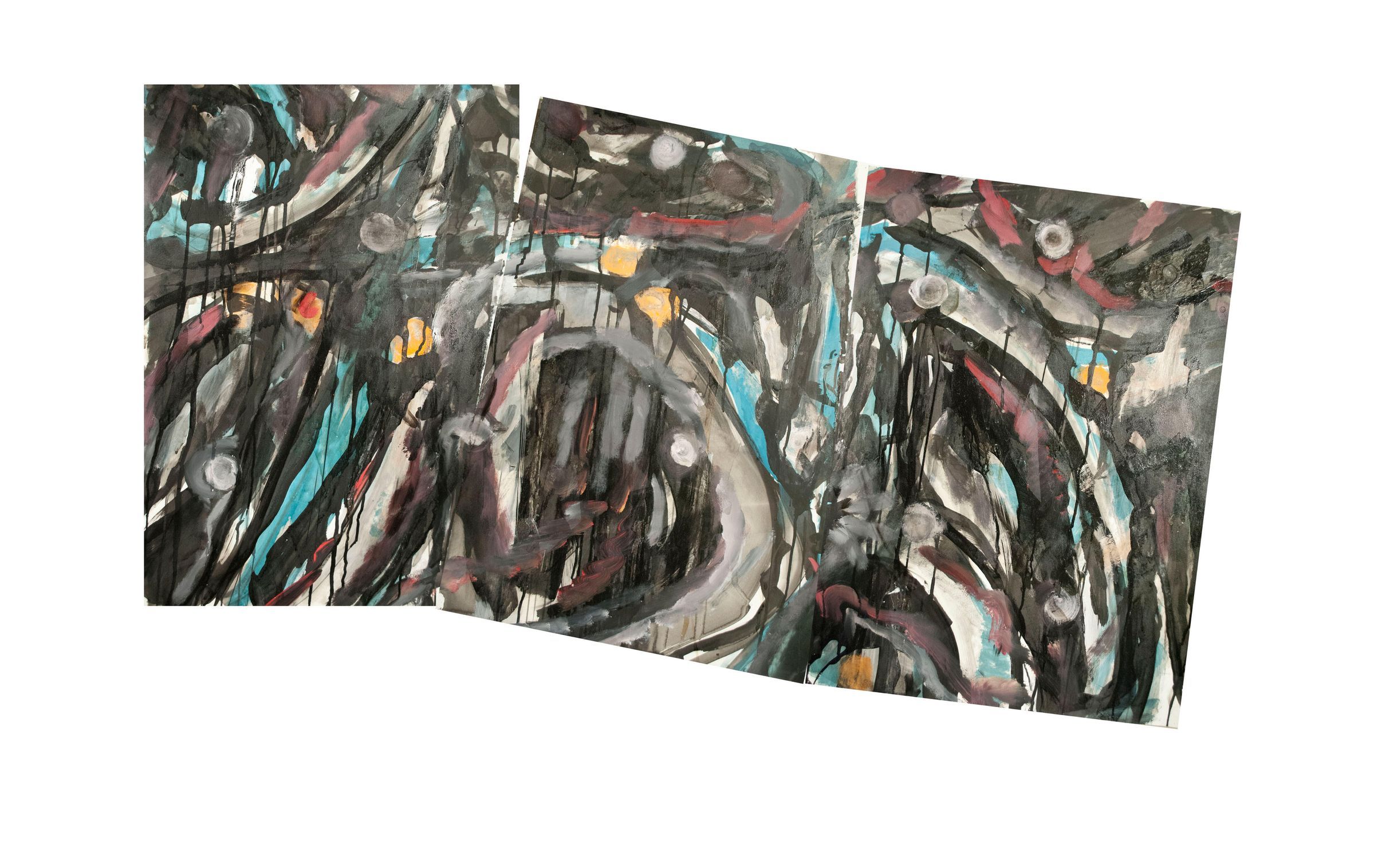 Triptych, abstract composition. Pinholes in corners of each. In good condition overall.Artwork Details