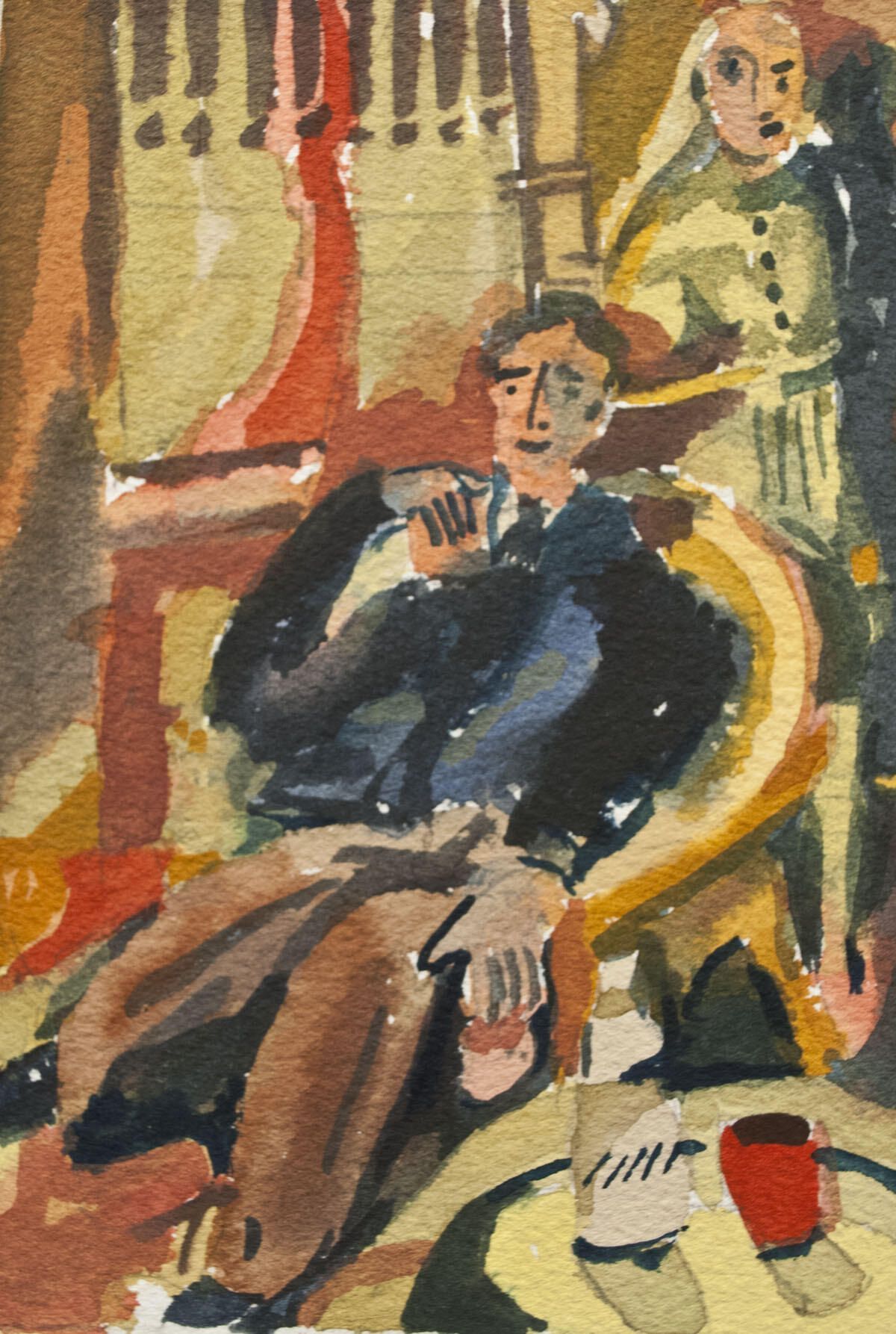 Poorly matted with tape. Image in good condition. Two male figures.Artwork Details
