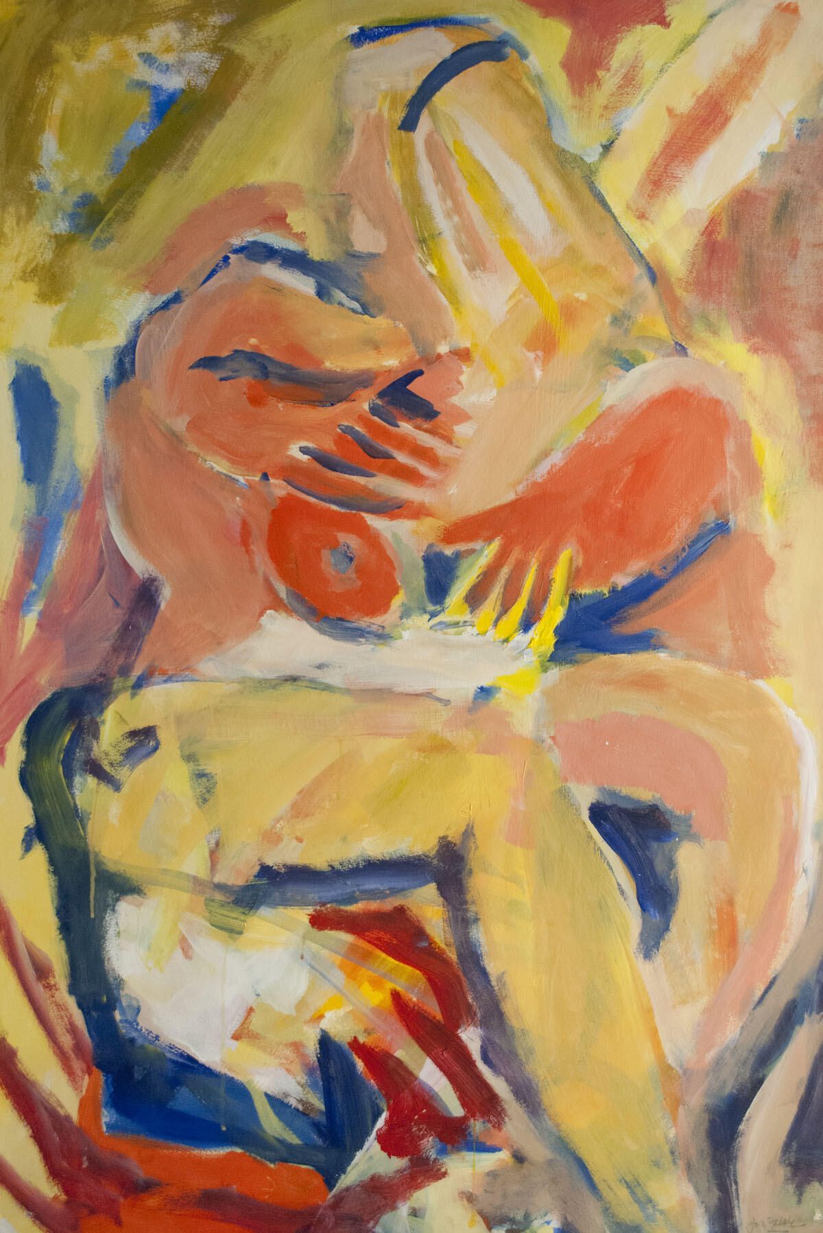 Bleed image, pinholes in corners. Some abrading of image, paint transfer throughout. Female figure.Location