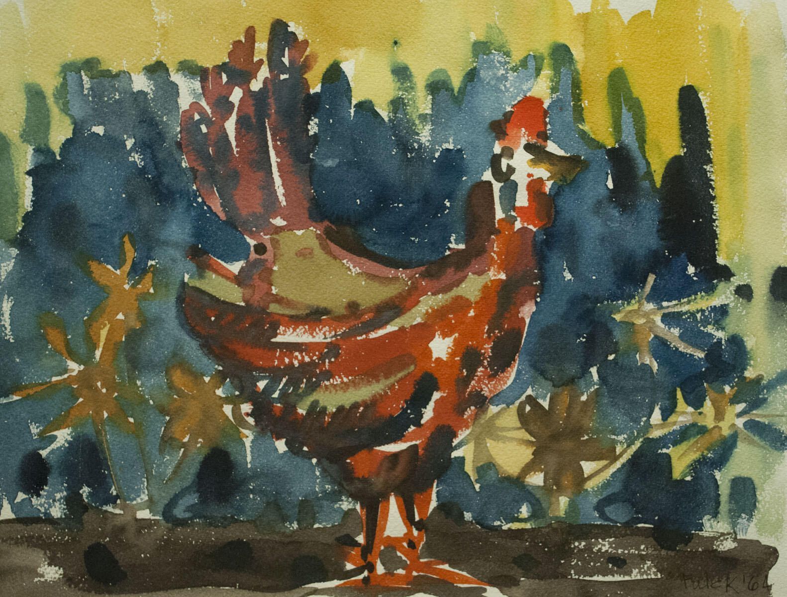 Rooster. Poorly matted with masking tape. Appears to be in overall good condition.Dimensions