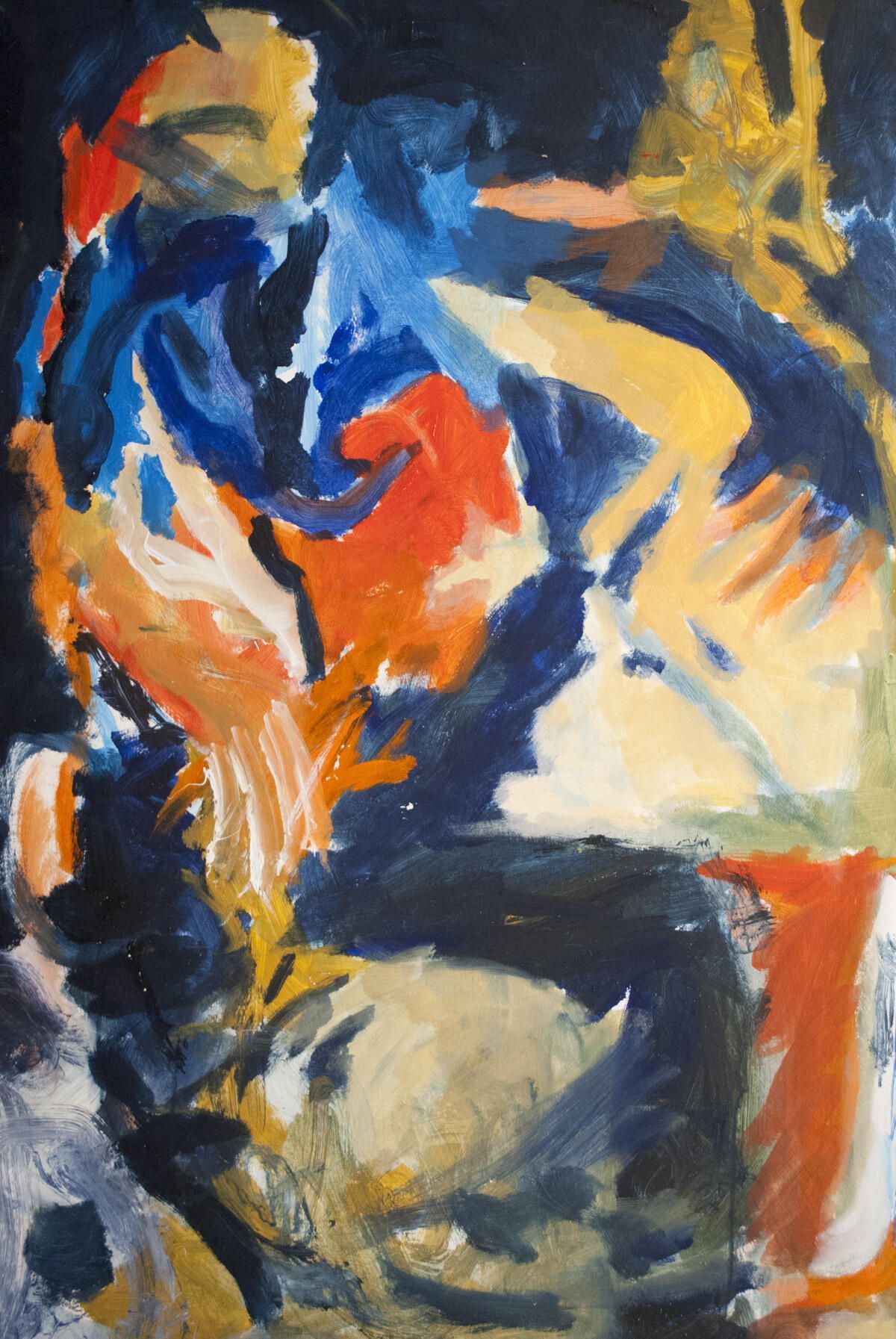 Multiple pinholes in each corner, bleed image. Small points of white pigment transferred throughout. Abstract seated figure. Montserrat series.Location
