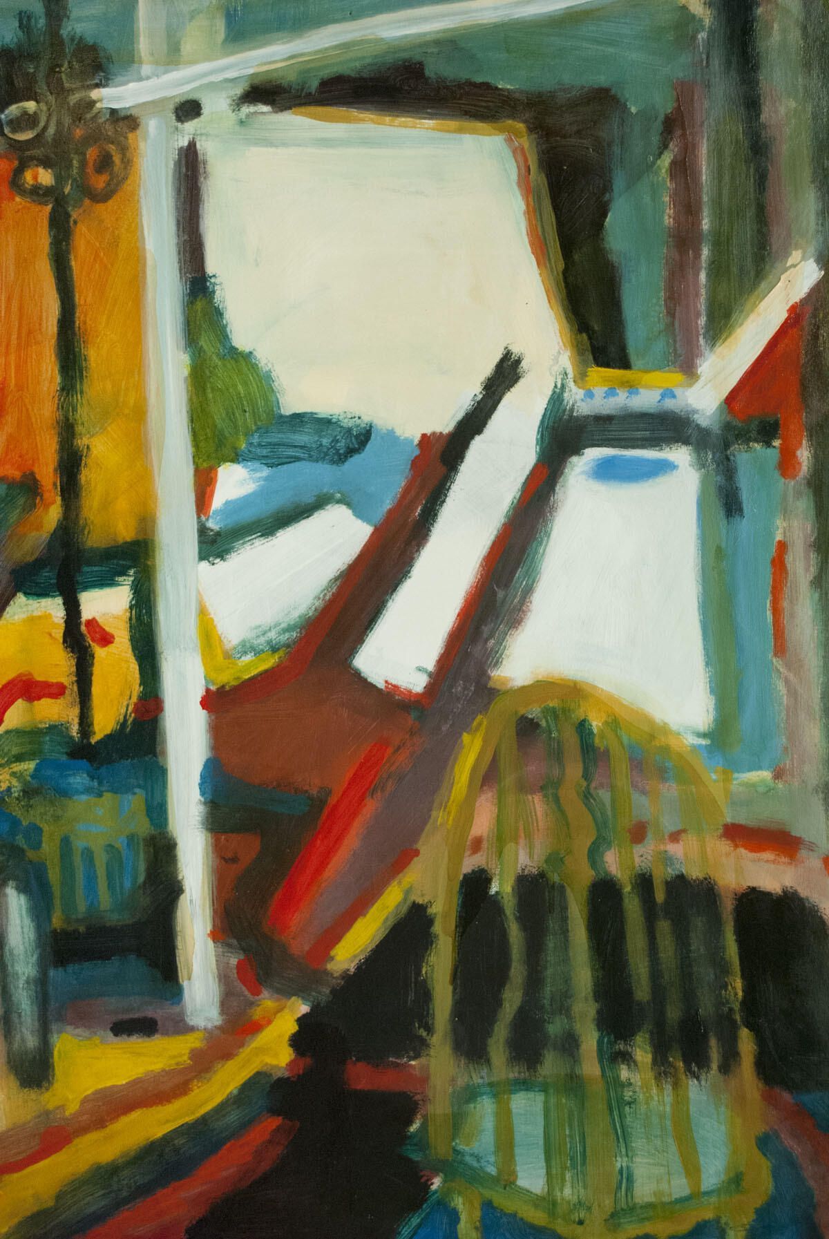 Multiple pinholes in corners, bleed image. Pigment transfer near right edge. Remainder of image in good condition. Interior scene.Location