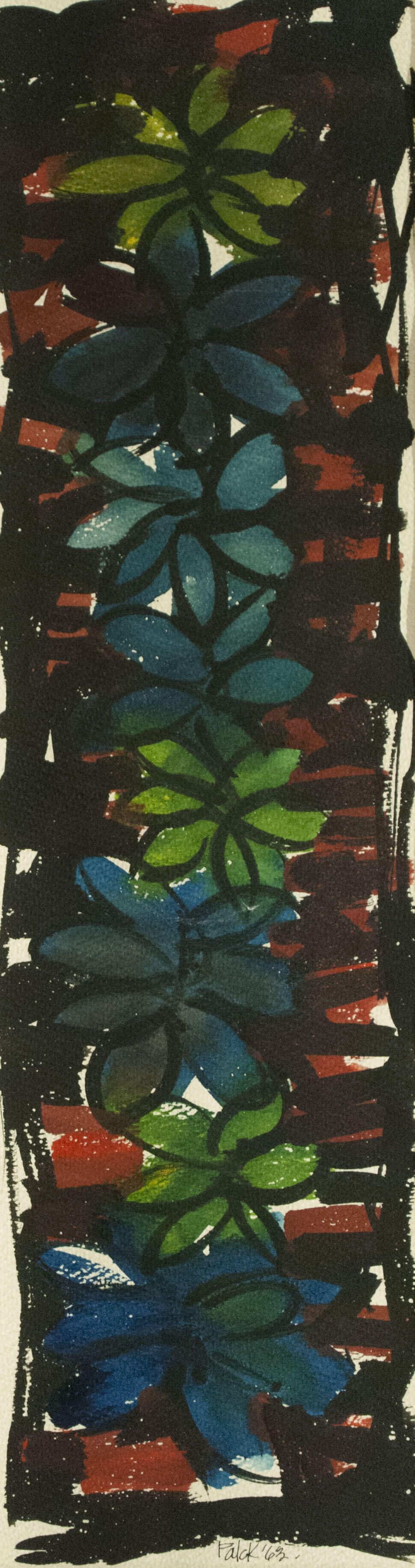 Poorly matted with masking tape. Flowers still life.Location