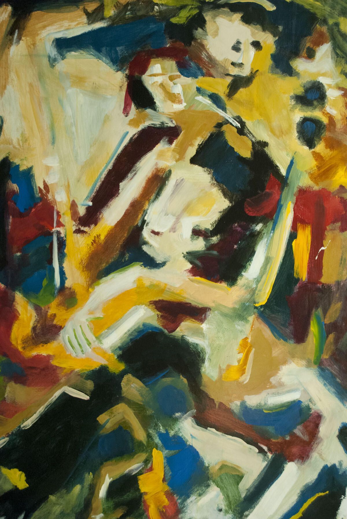 Corners reinforced with canvas due to multiple pinholes weakening. Bleed image. Right side of image has areas of pigment transfer from another work. Figure. Montserrat series.Location