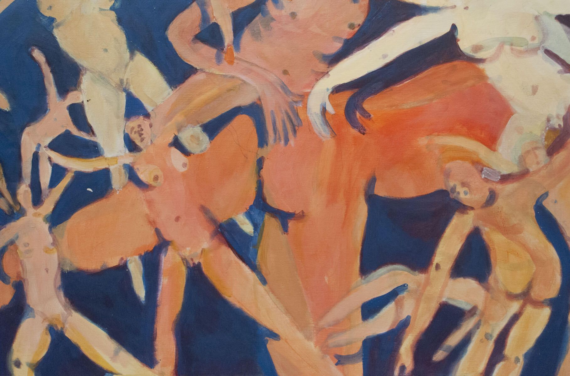 Abrasions in borders, affect image at bottom. Paint chips adhered to image. Multiple female figures.Artwork Details