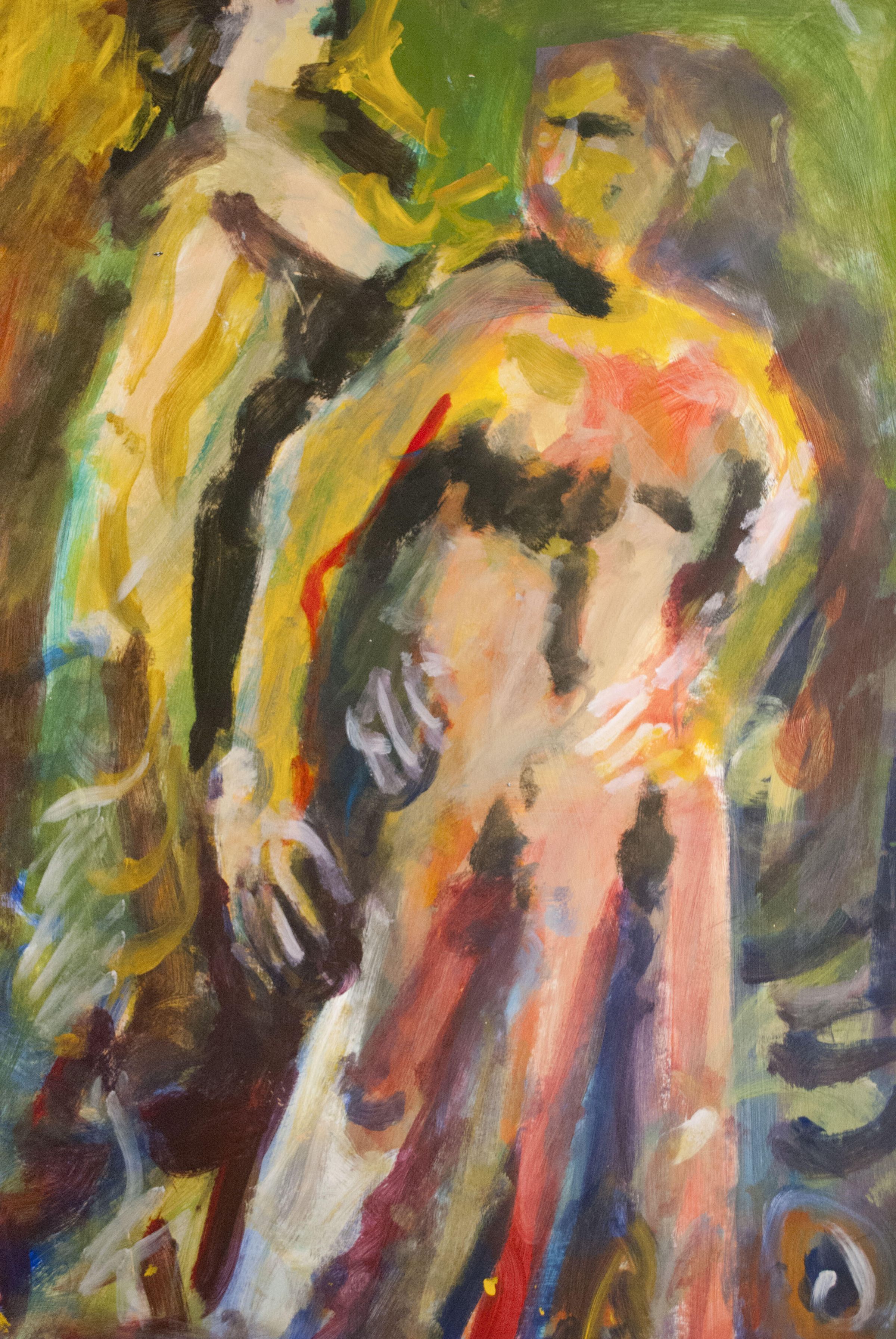 Bleed image, multiple pinholes in corners. Tear in left edge. While and yellow pigment transfer at bottom. Nude standing figure. Montserrat series.Location