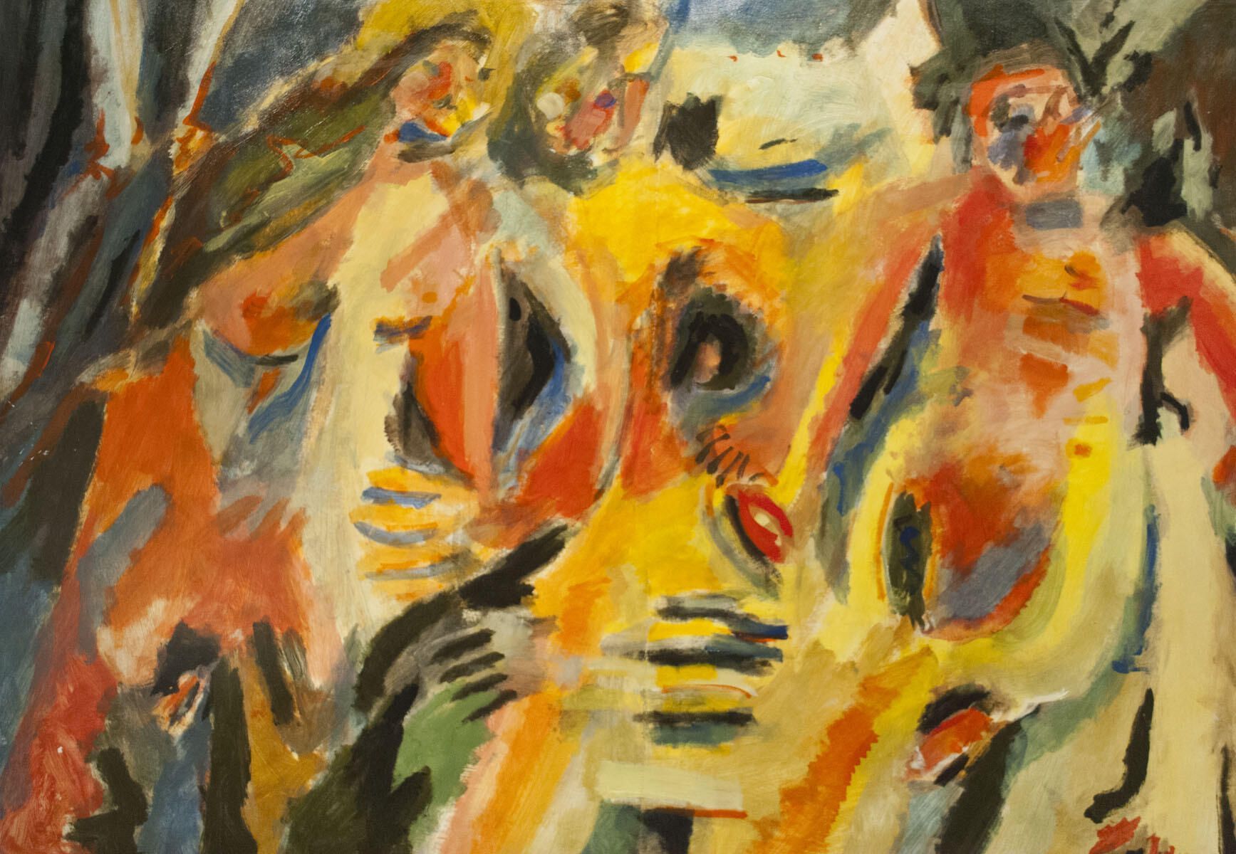Two sheets adhered together to form larger image area. Pinholes in each corner. Three figures. Montserrat School of Art series.Dimensions