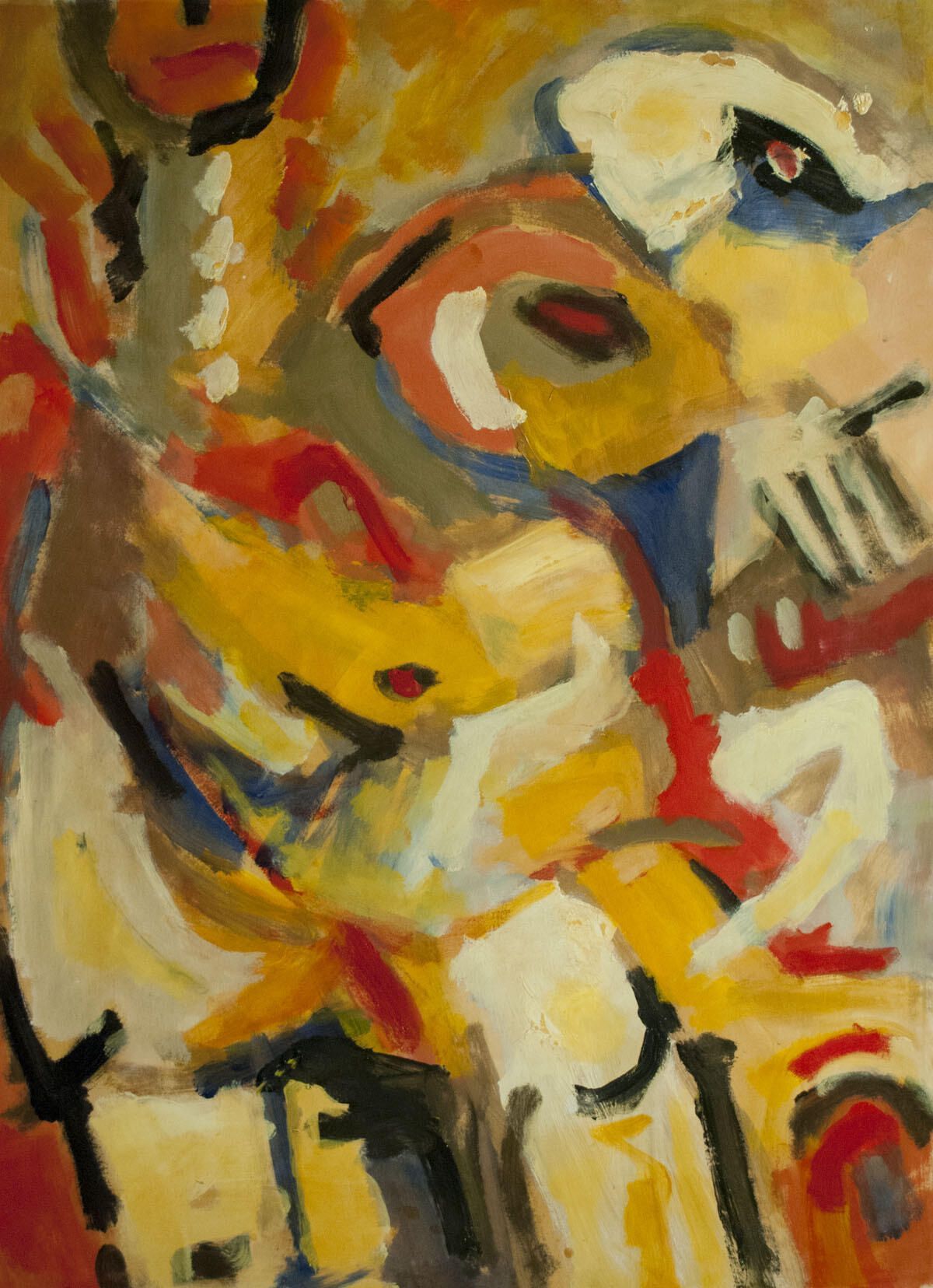 Stains, abrasions, smudges in borders. Image in good condition. Female nude portrait. Columbus Ave. series.Location