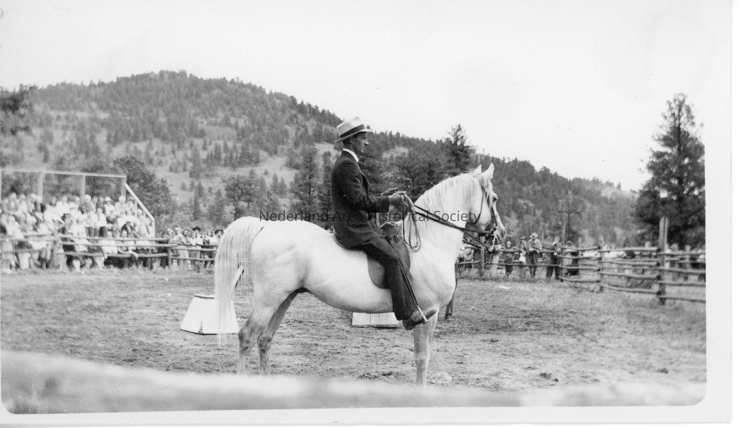 In 1936, Lynn W. Van Vleet of Denver bought the 13,000 acre Tom Tucker Ranch north of Nederland and re-named it the Lazy VV Ranch. He theorized taht raising and training Arabian horses at a high altitude would produce animals with increased stamina. He opened the ranch to visitors for Sunday morning shows in June 1939, and the number of the number of people attending the summer shows steadily increased until Van Vleet sold the ranch in 1951. The ranch eventually became known as Caribou Ranch.Collection