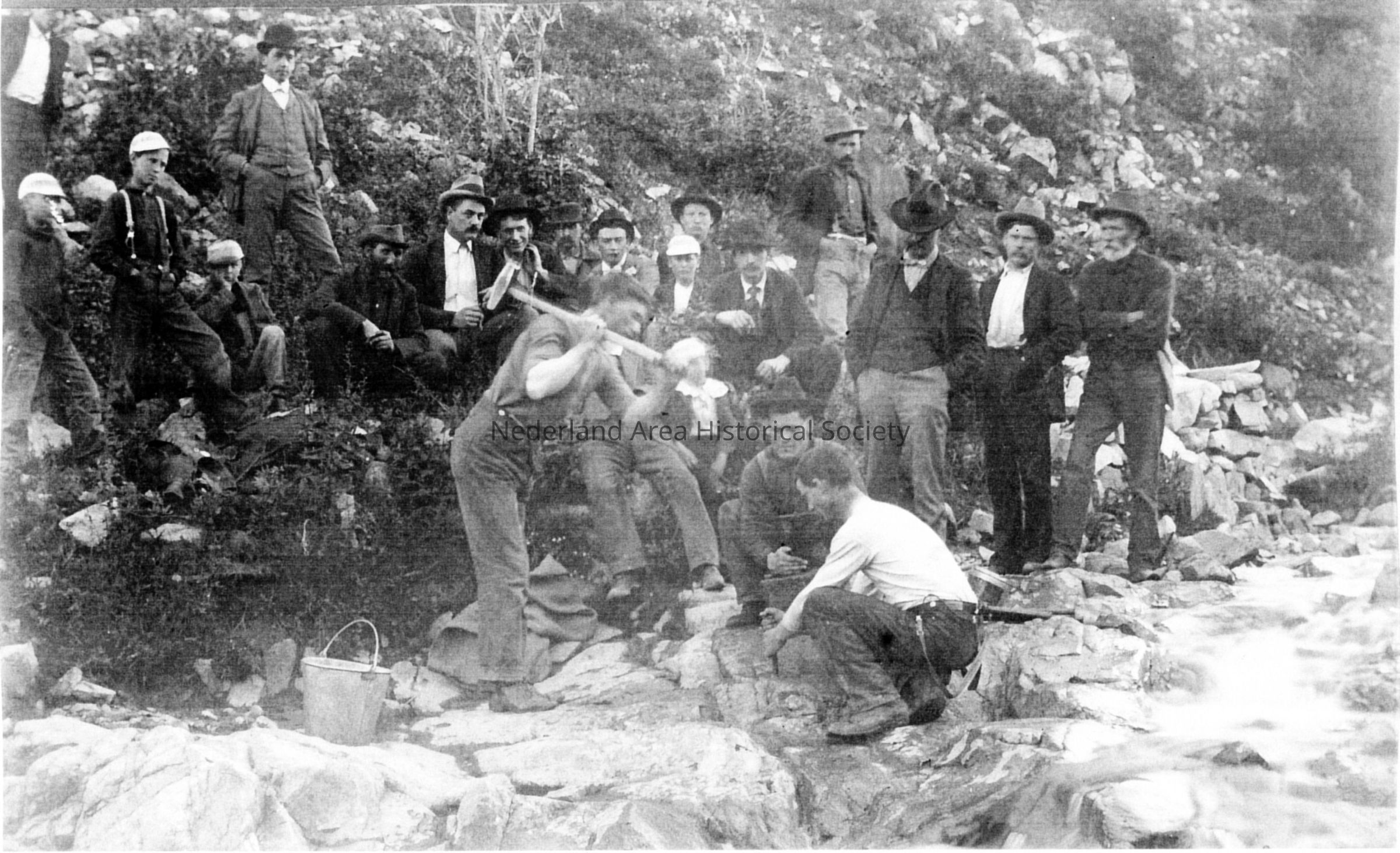 2. Dopp and Nelson Winning 1st Money DoubleHand Drilling Contest, Nederland, Colo. July 4th 1916, OutWest Photo, Boulder