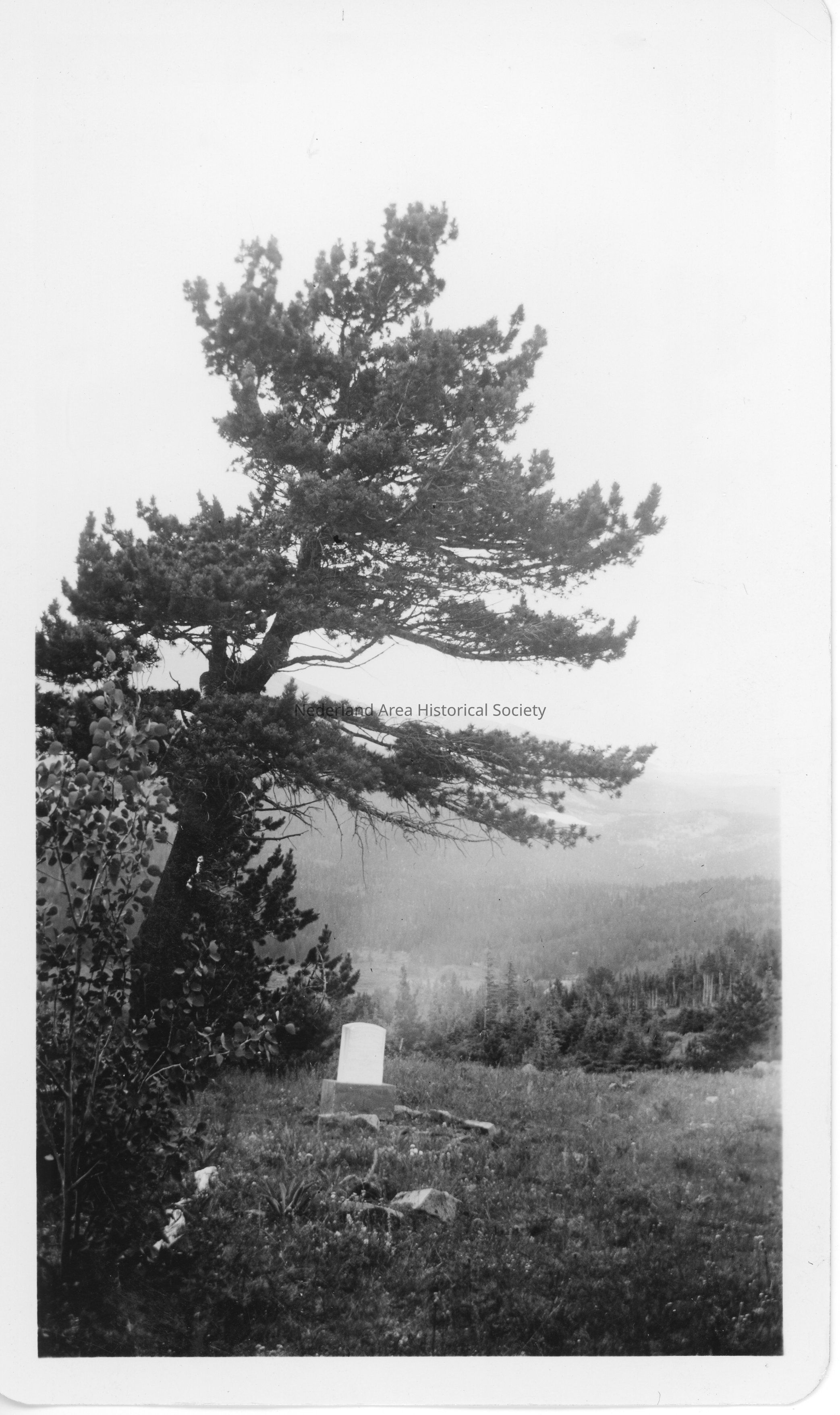 Caribou Cemetery August 1938, black and white photograph, stamped on back with: "AUG 17 1938, BRI-TONE PRINTS, Trade Mark Reg., Denver"
