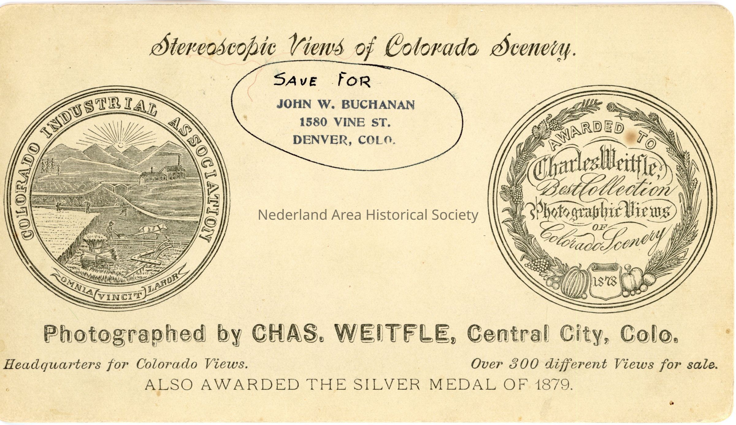 Stereoscopic view of Caribou, Colorado, from Goat Hill. Photographed by Chas. Weitfle, Central City, Colo.