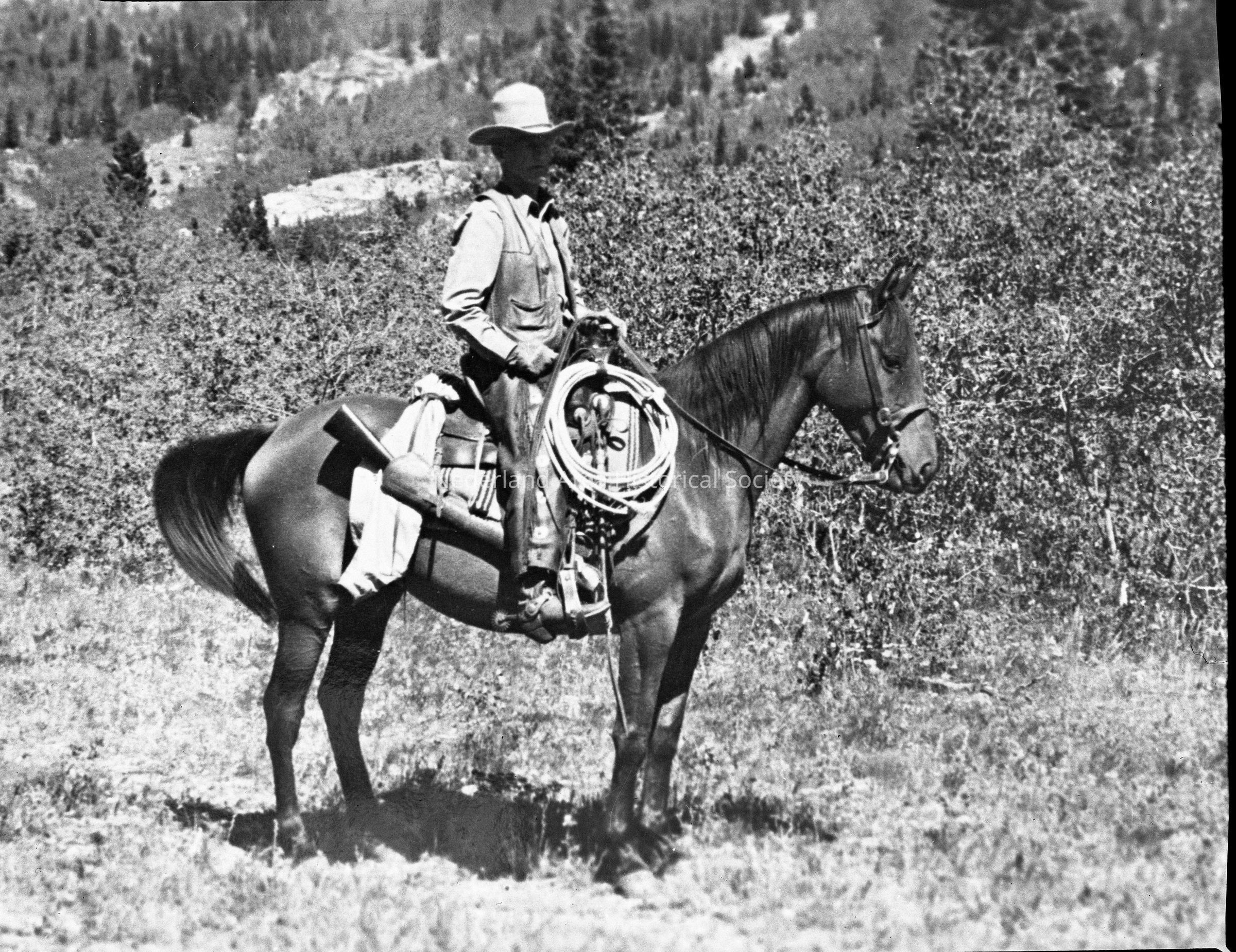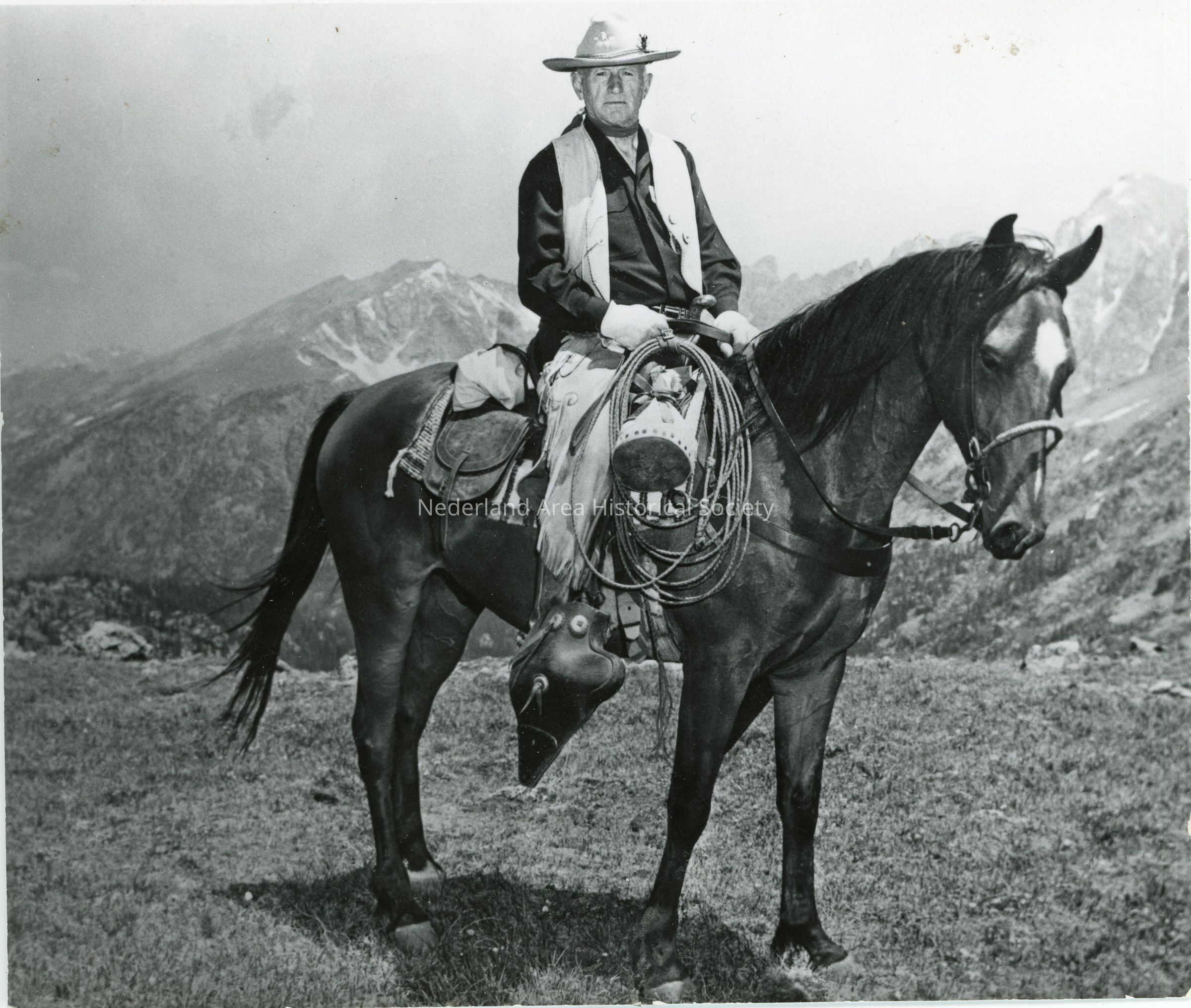 15. Envelope of photos of Don Kemp, trail guide and with horse, 8 black and white prints (3 of which are duplicates), 2 color prints (one of which is a duplicate)Collection