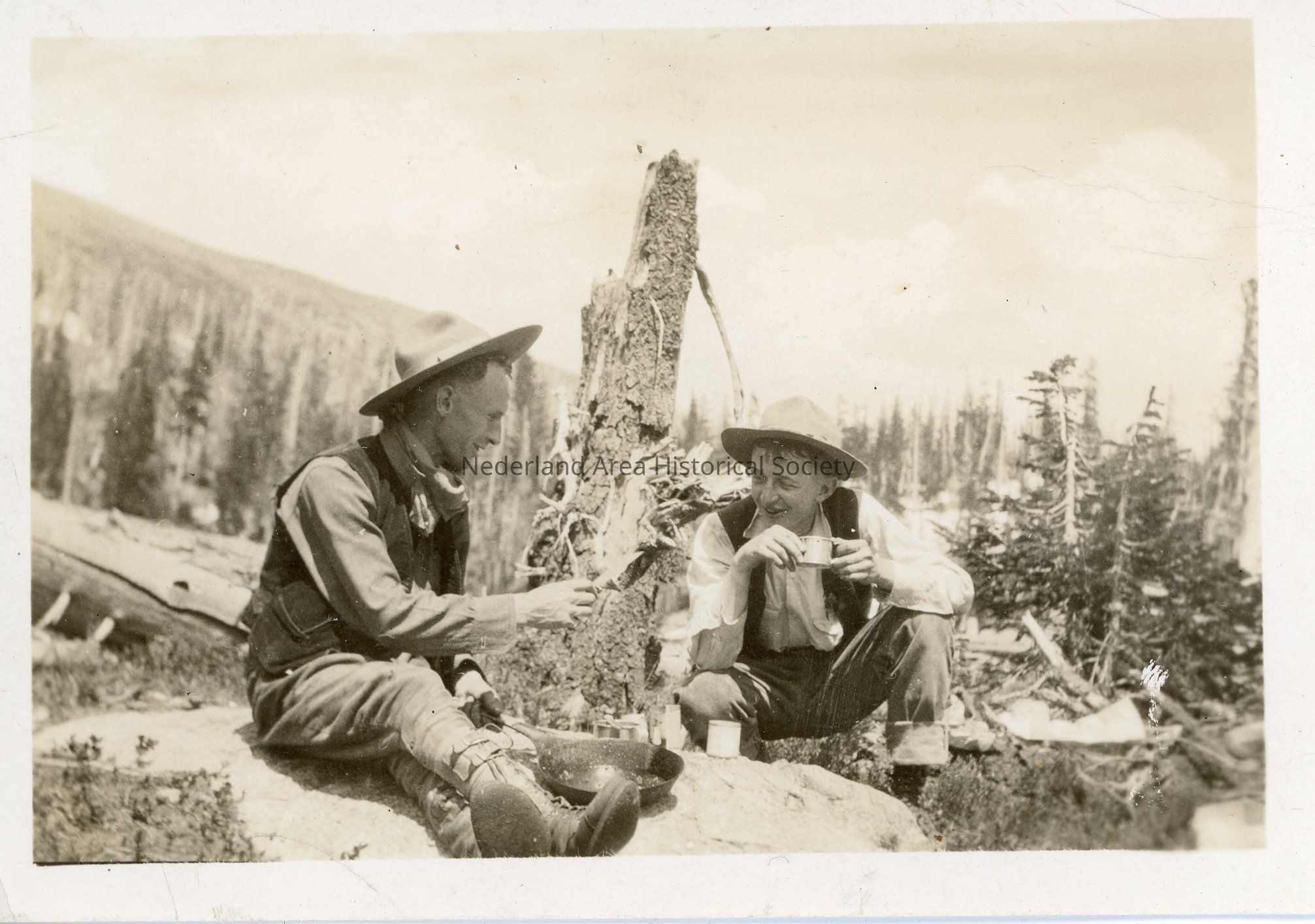 12. Don and Robert Kemp share a meal and coffee on a camping trip, two prints, 3.5"x2.5" and 6"x4"