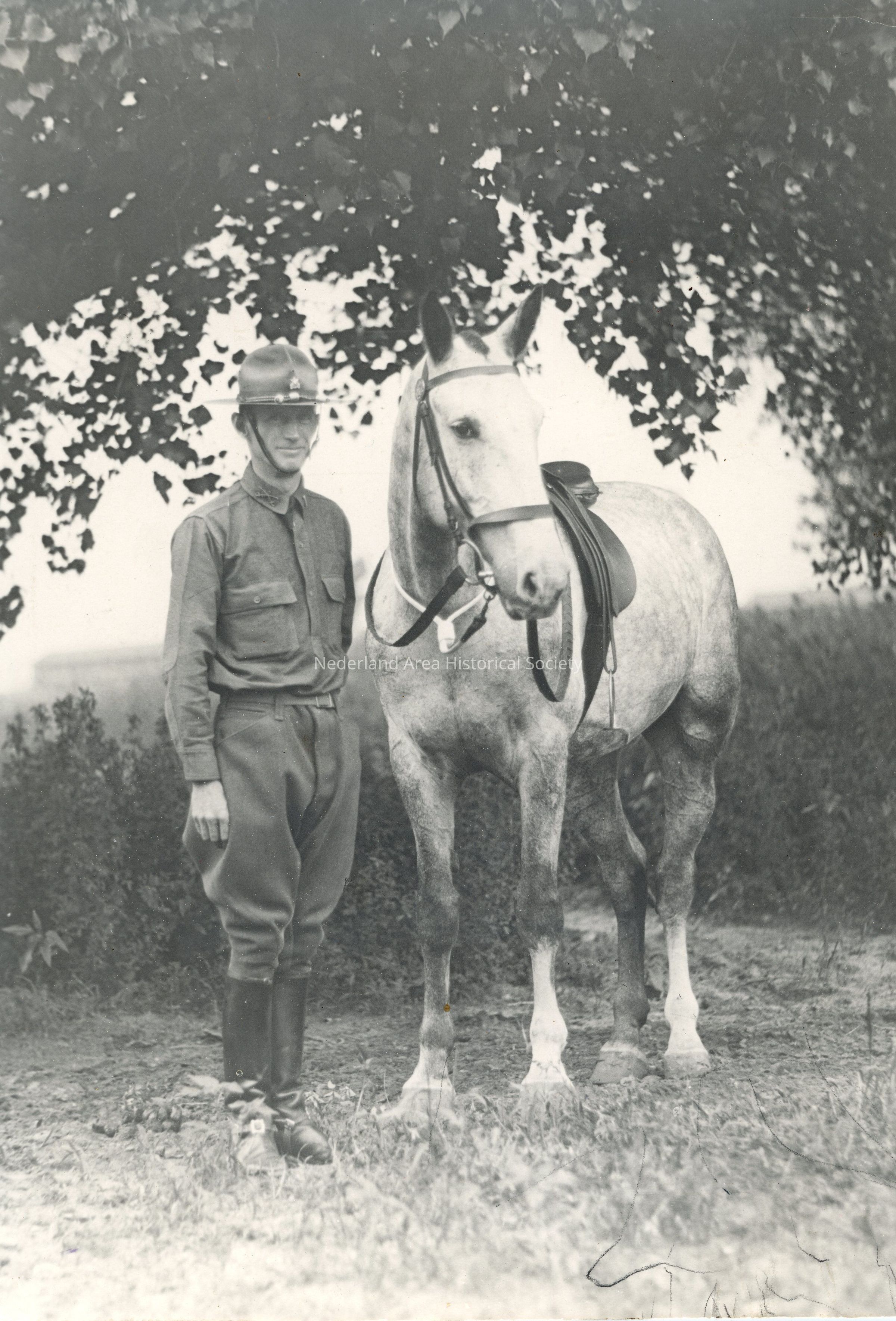 11. Don Kemp in uniform with his horse. Stamped on back: From Sub-Exchange Studio, Ft. Riley, Kansas, 5"x7" print. One duplicate.