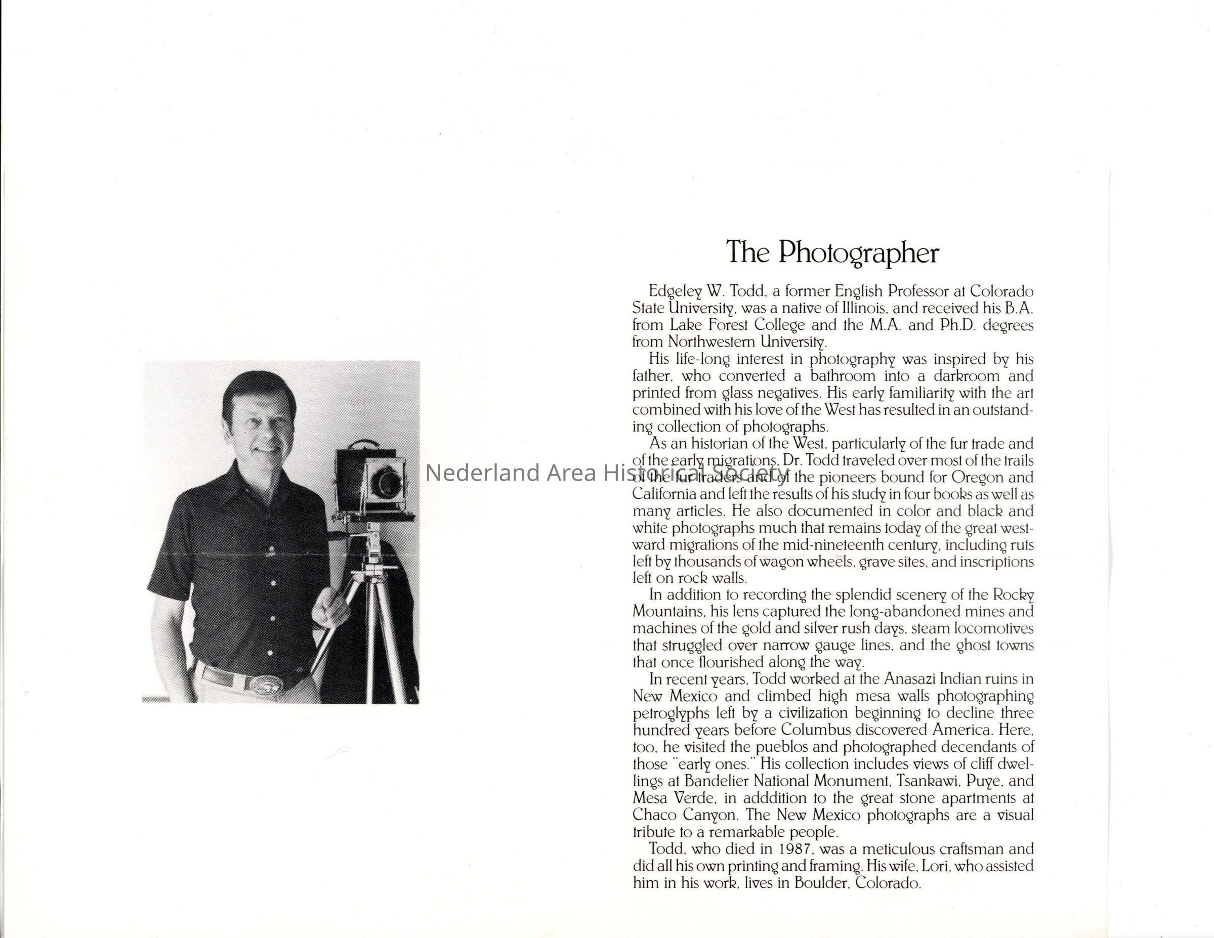 Photo and biography of Edgeley W. Todd from brochure for photo exhibitionCollection