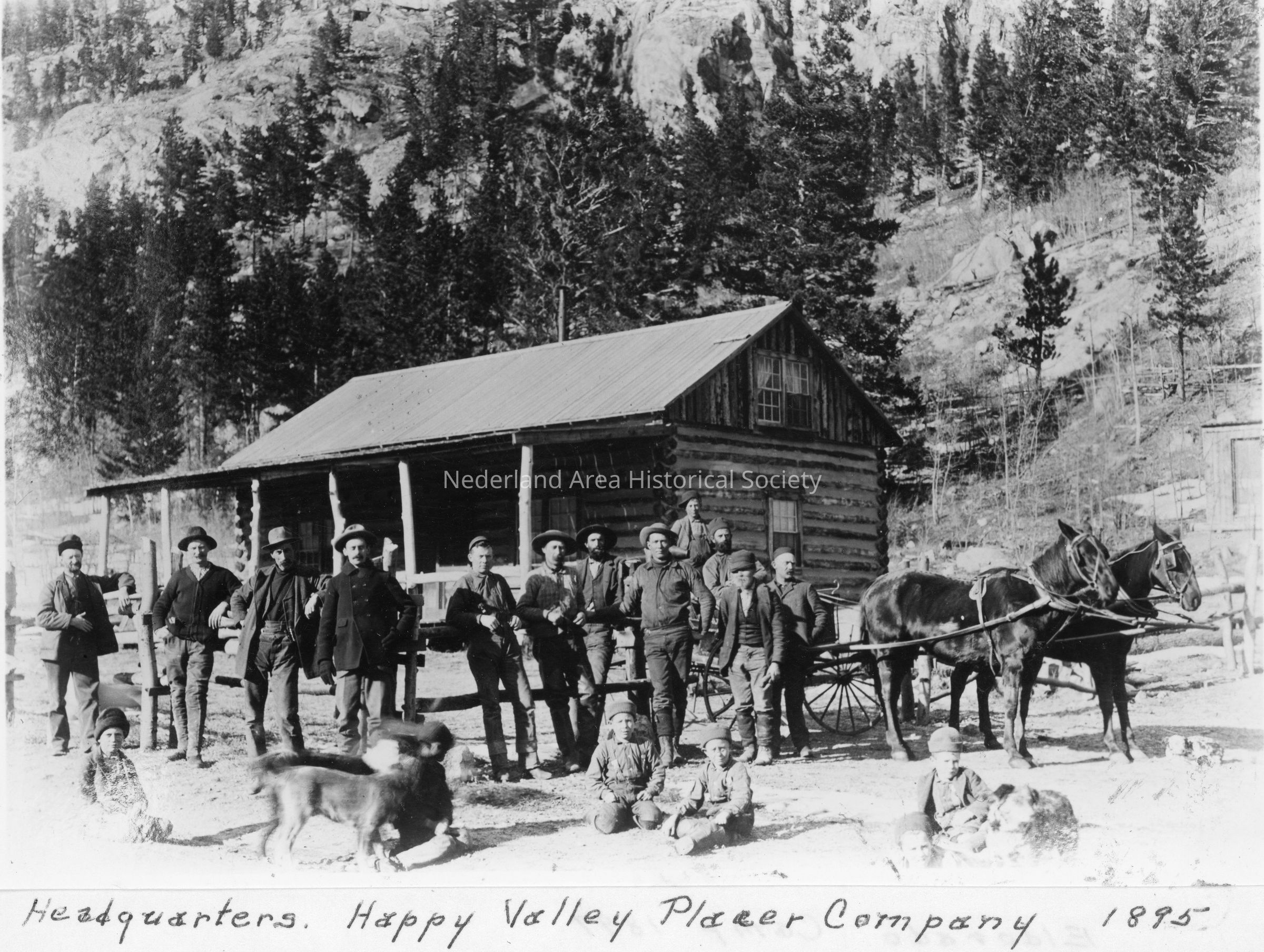 5. Headquarters Happy Valley Placer Company 1895. 5"x7" black and white photograph. Located in 2024.10.60 page 5.Context