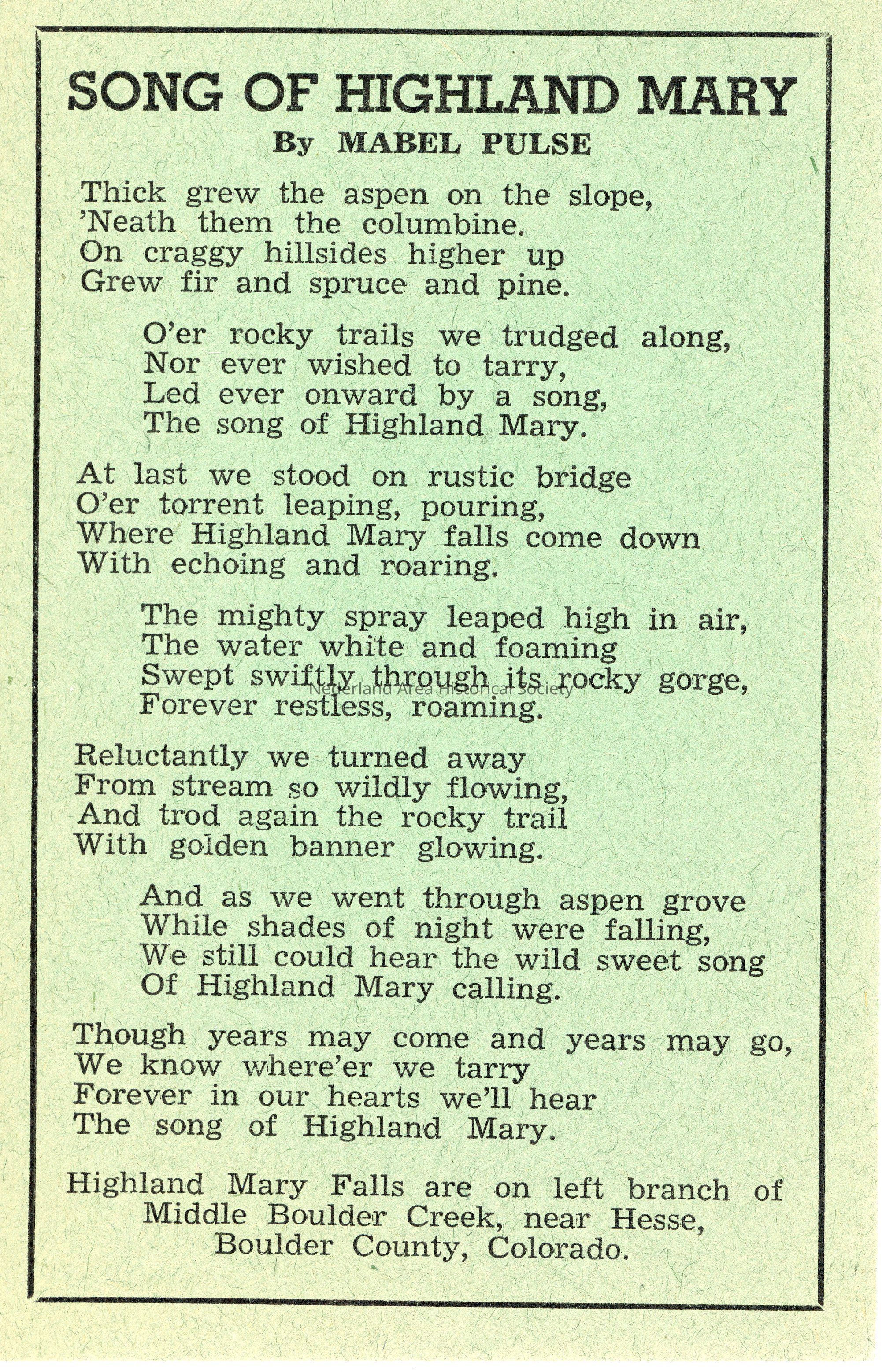 3. Green card with poem "Song of Highland Mary" by Mabel PulseCollection