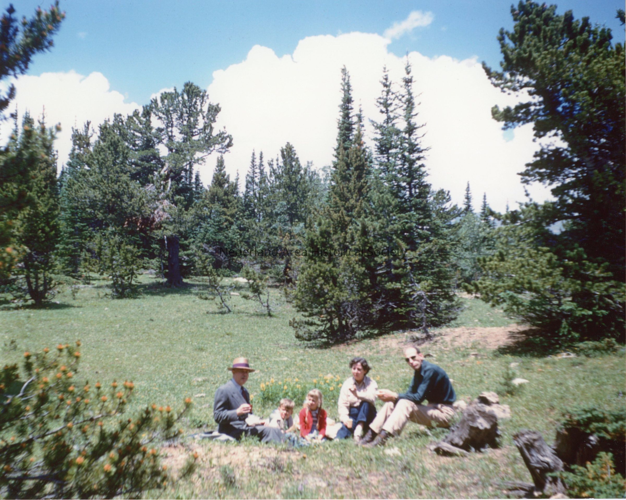 Lorraine Todd Family 1950s. Picnic at Caribou, Colo., 1951. Virgil Heltzel, Lois and children, Sam Kipp.