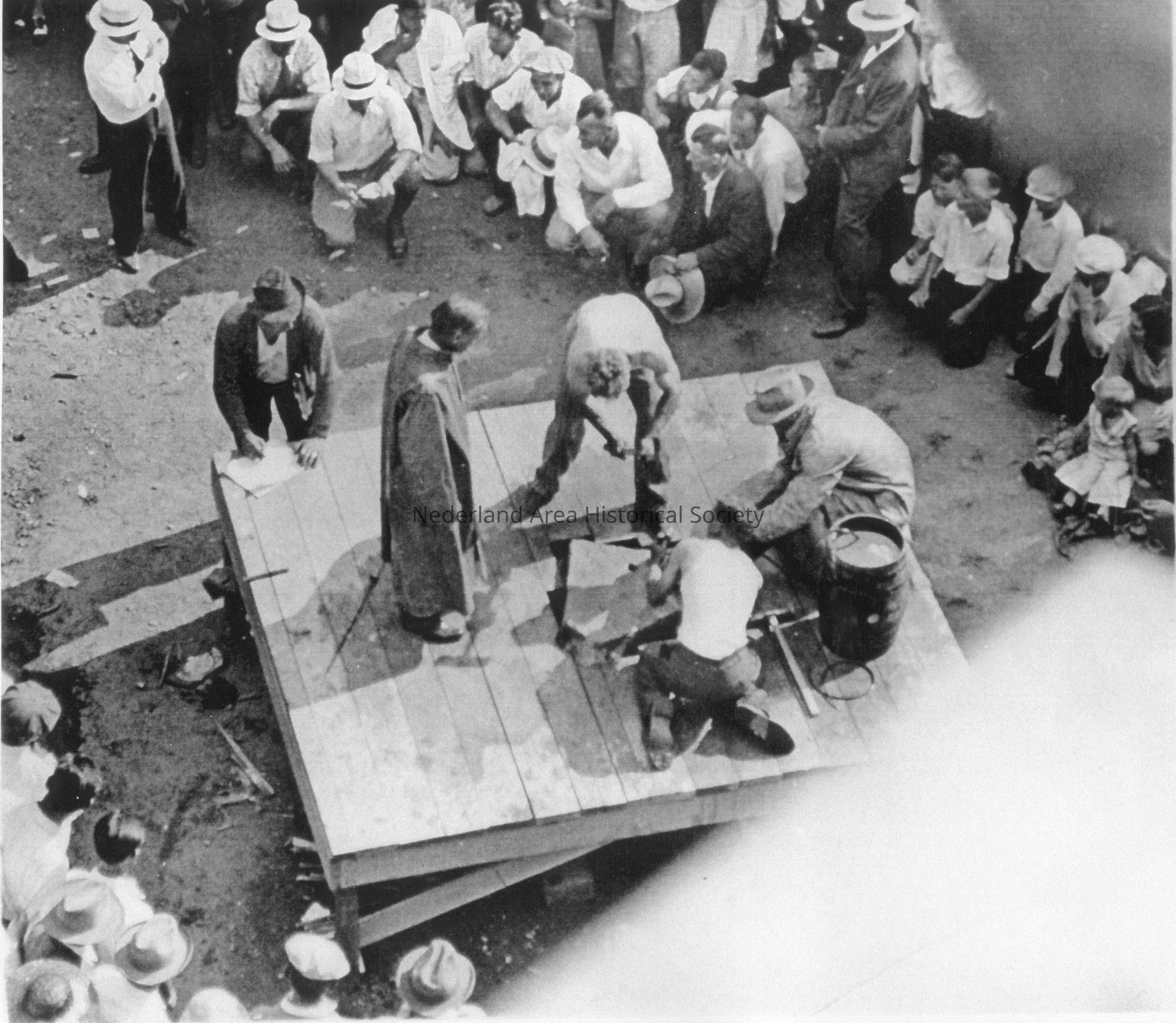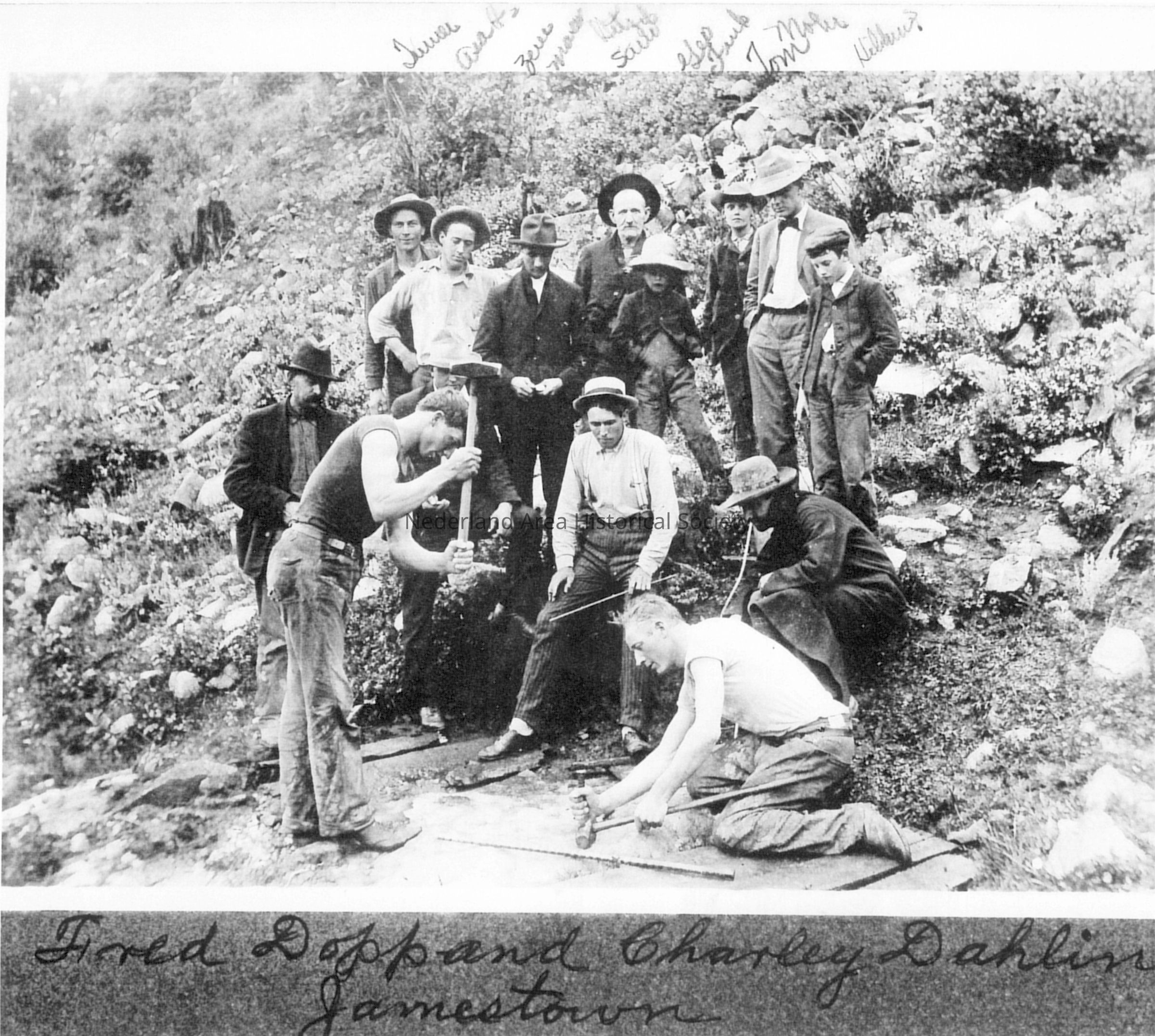4. Fred Dopp and Charley Dahlin in mining contest in Jamestown. Some spectators also identified.Collection