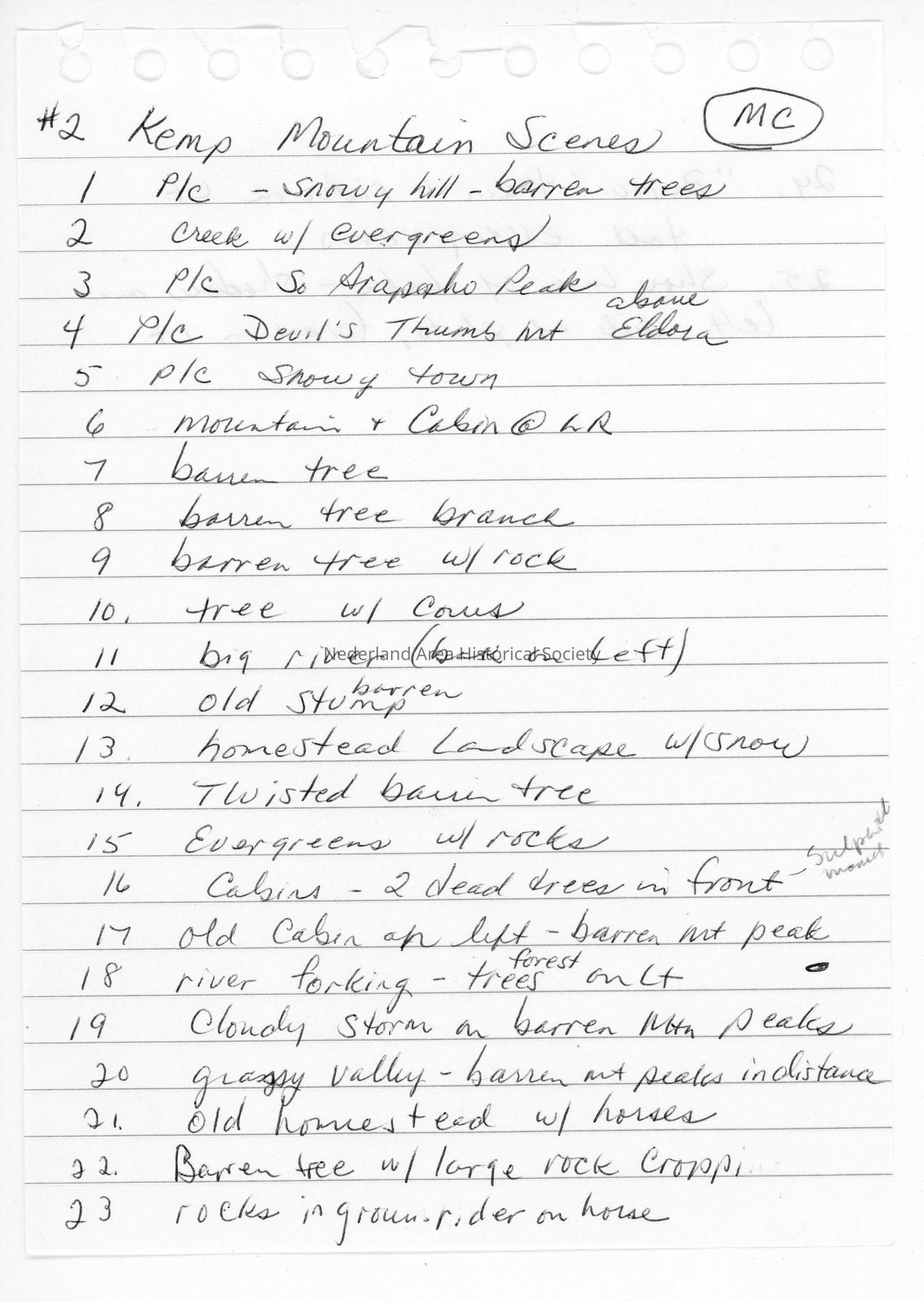 1. 24 photographs, most by Donald C. Kemp, of mountain scenes, with handwritten inventory