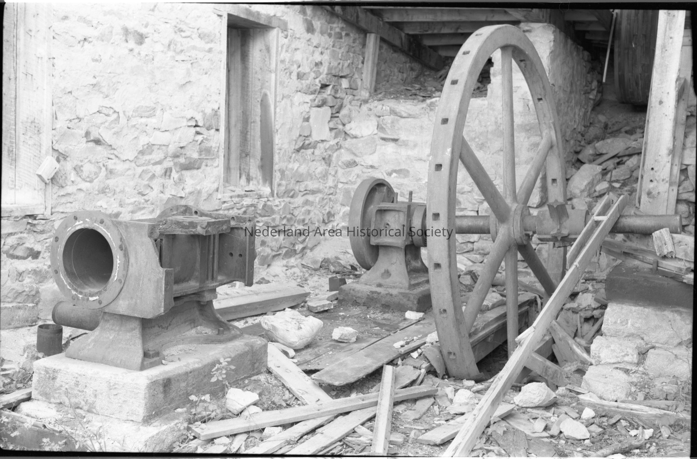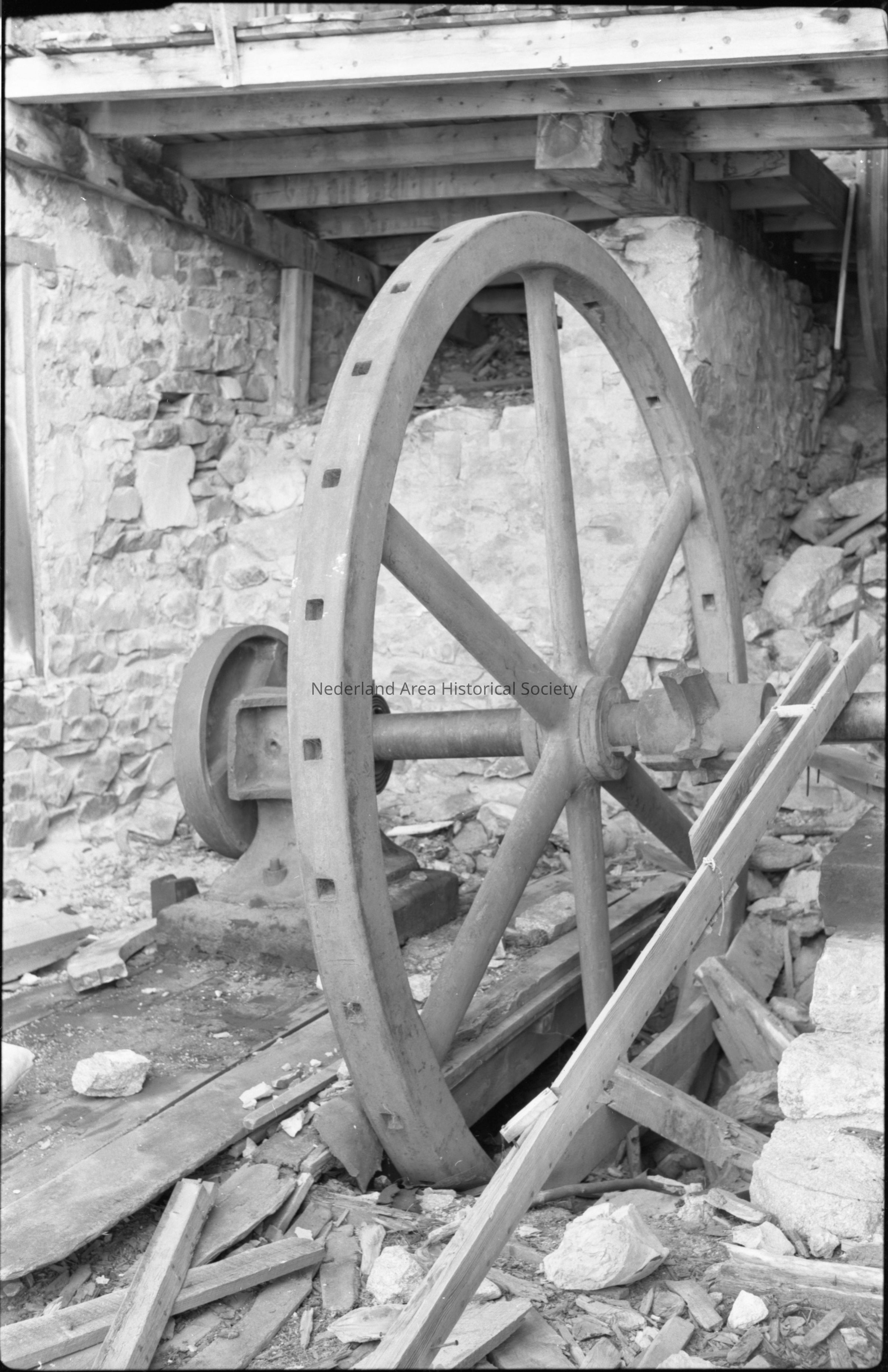 Modoc Mill, flywheel/engine, October 1978