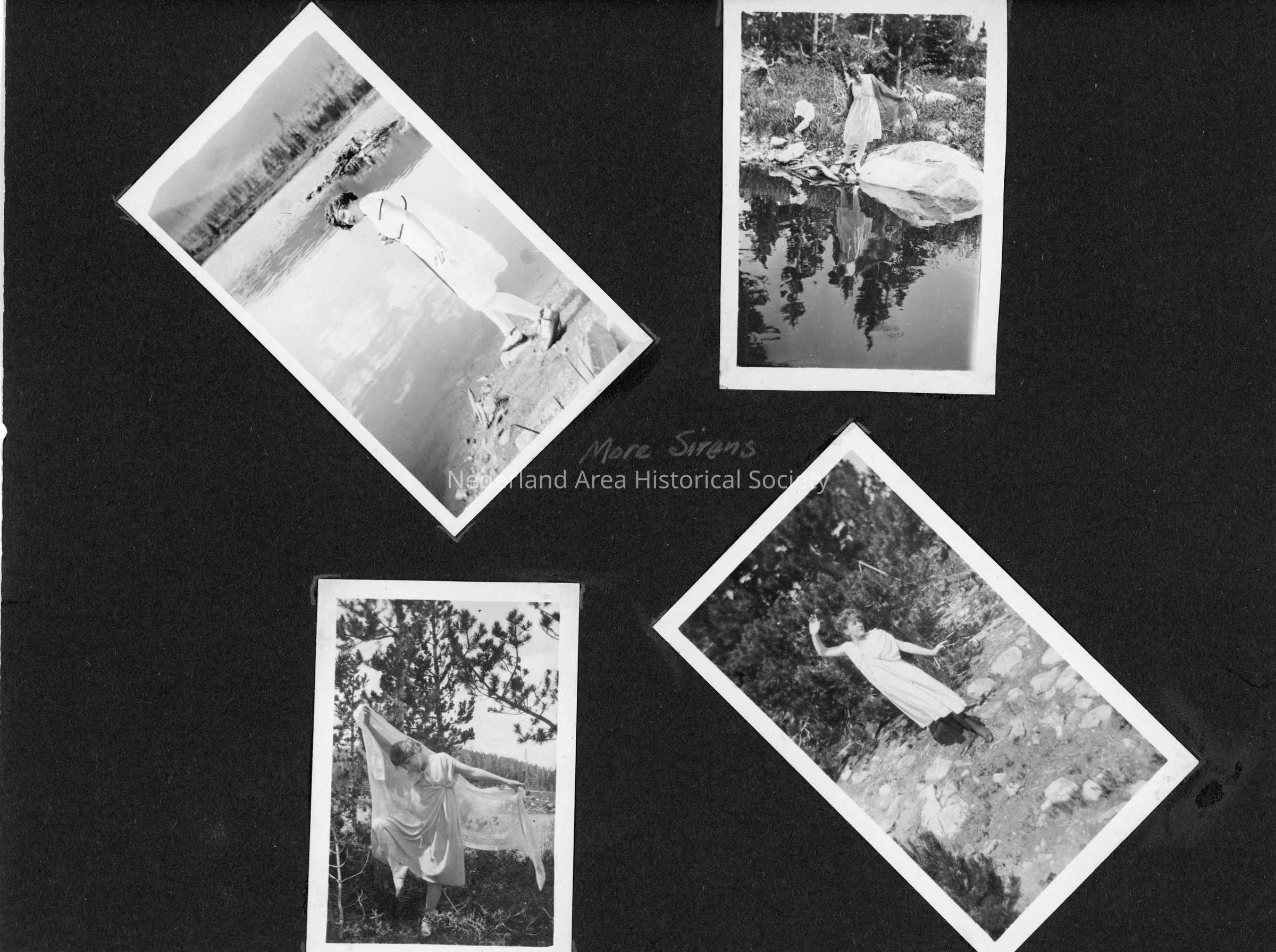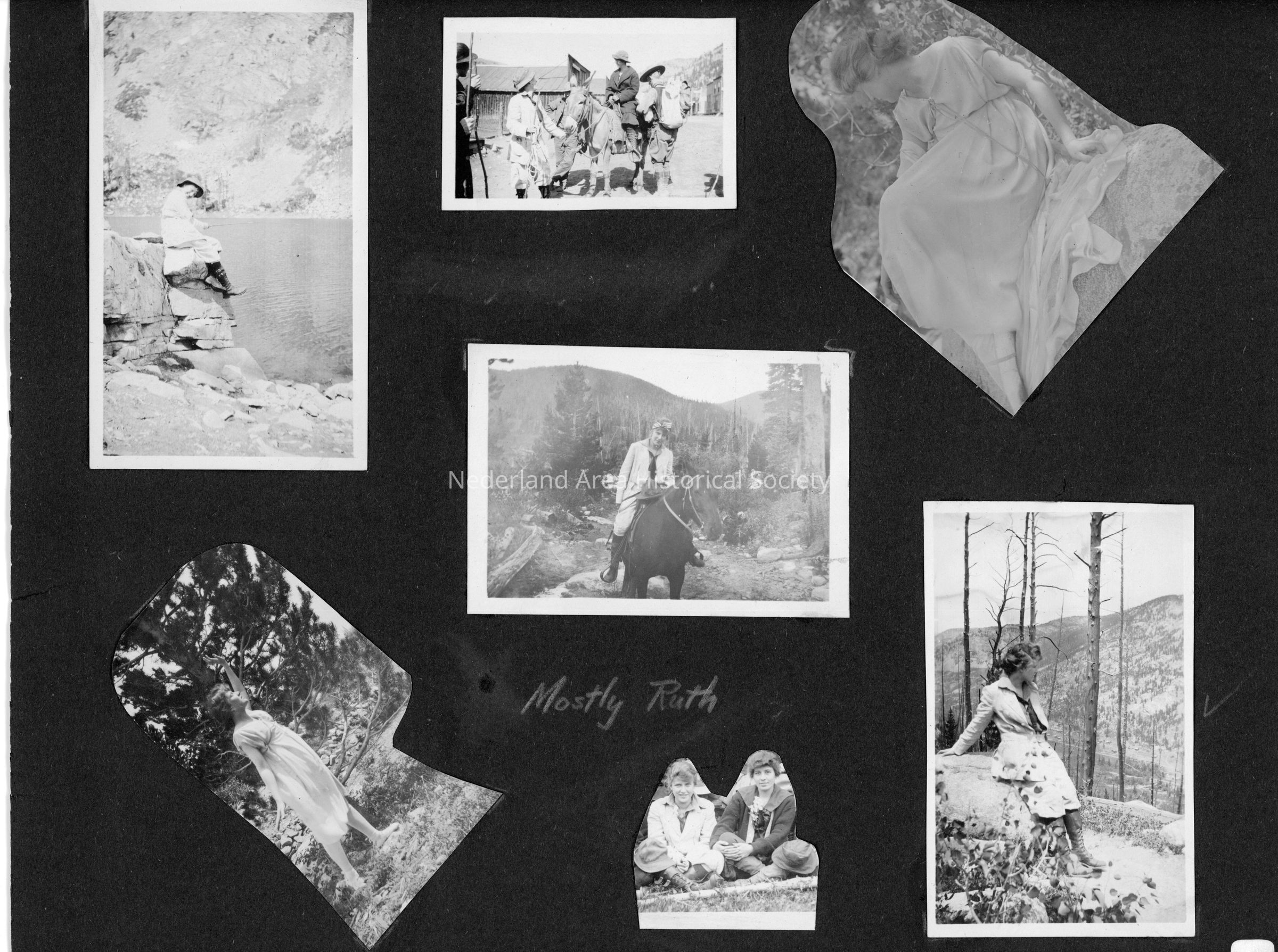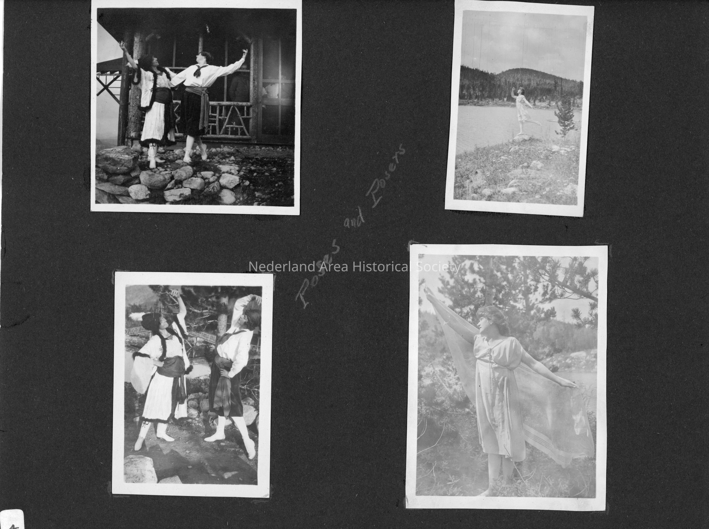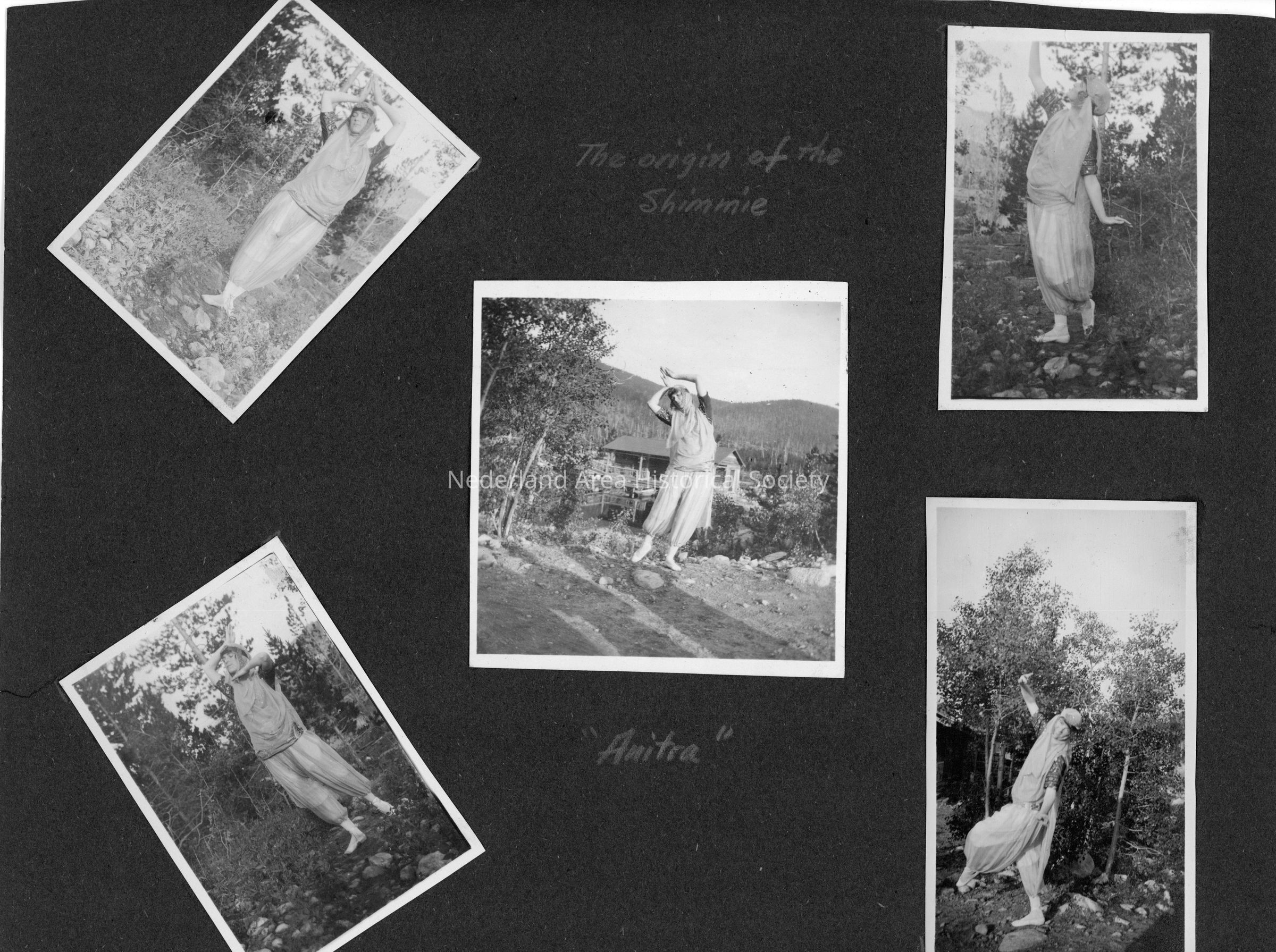 Six loose scrapbook pages of photos of the Rocky Mountain Dancing Camp and Annie Brown's lodge. Some of the photos are cataloged individually. See 2024.10.14.