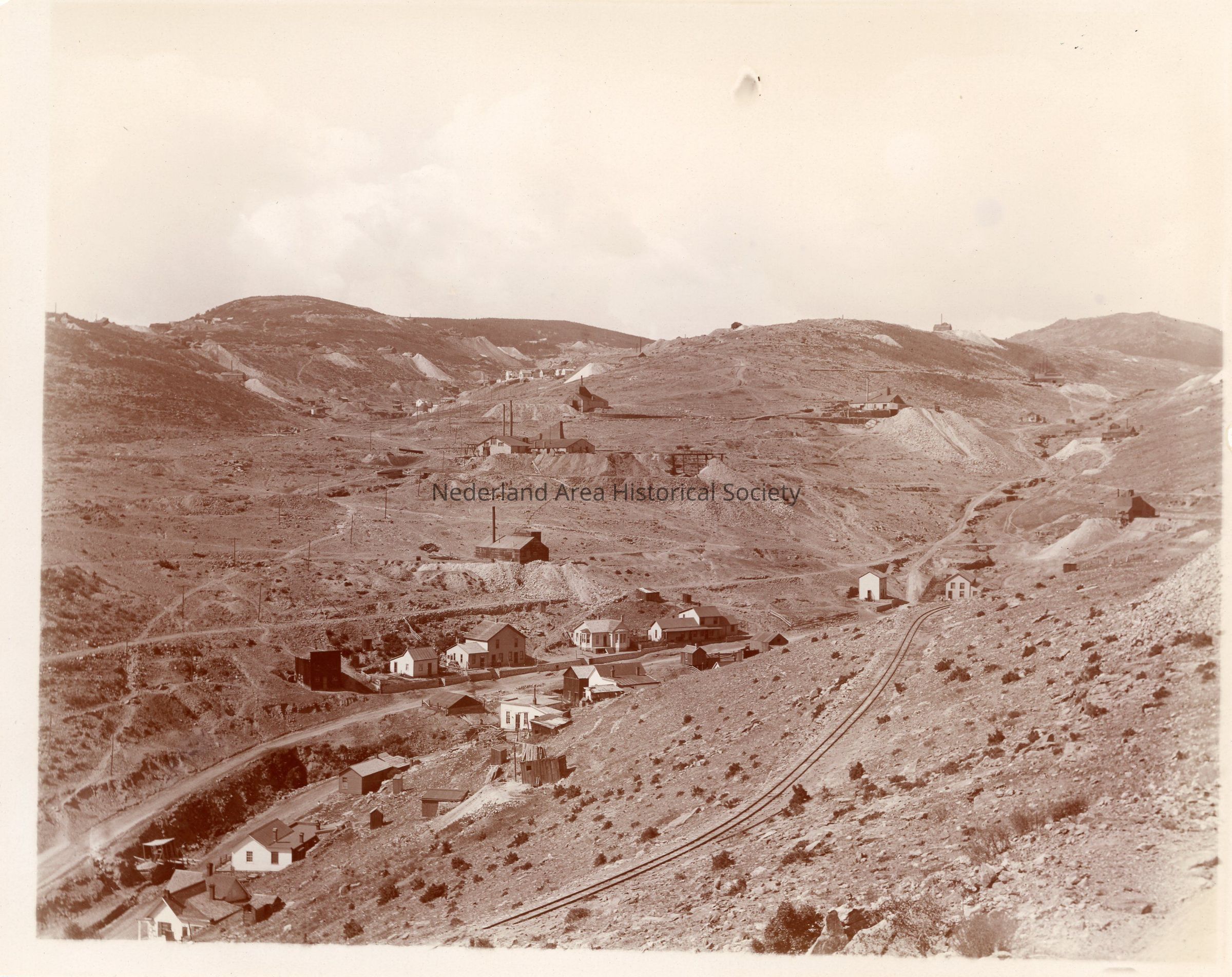 Nine photos of unknown towns and mines. Photos by Harry H. Lake. Part of a collection of 17 photos in an envelope labeled "Central City, H.H. Lake Solio prints."Collection