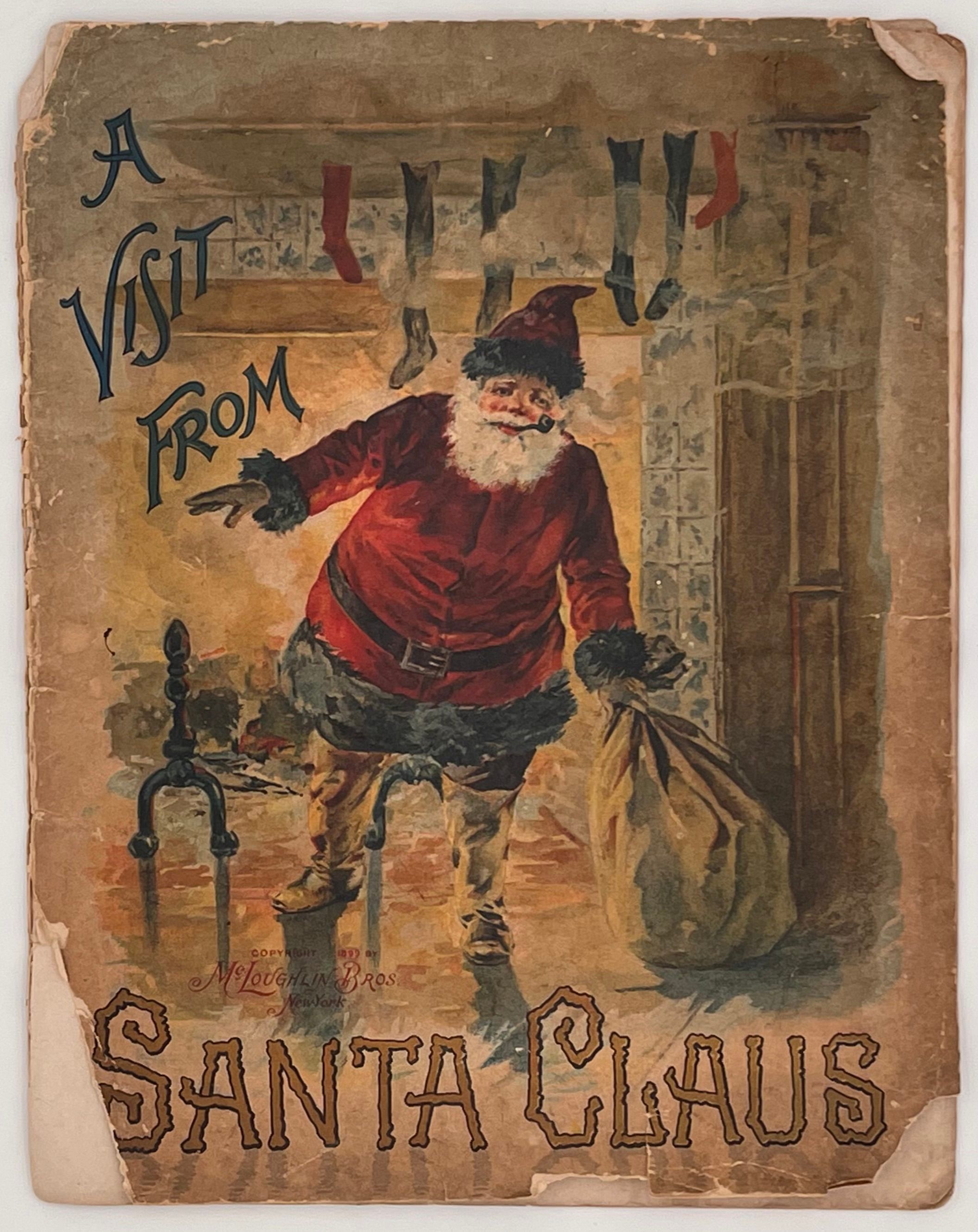 A Visit from Santa Claus was published by the New York firm McLoughlin Brothers in 1899. Active from 1828 to 1920, McLoughlin Brothers pioneered color printing techniques for children's books. They specialized in retellings of classic children's stories and helped popularize illustrators like Thomas Nast, William Momberger, and Justin H. Howard, though the artist responsible for these images is uncredited.