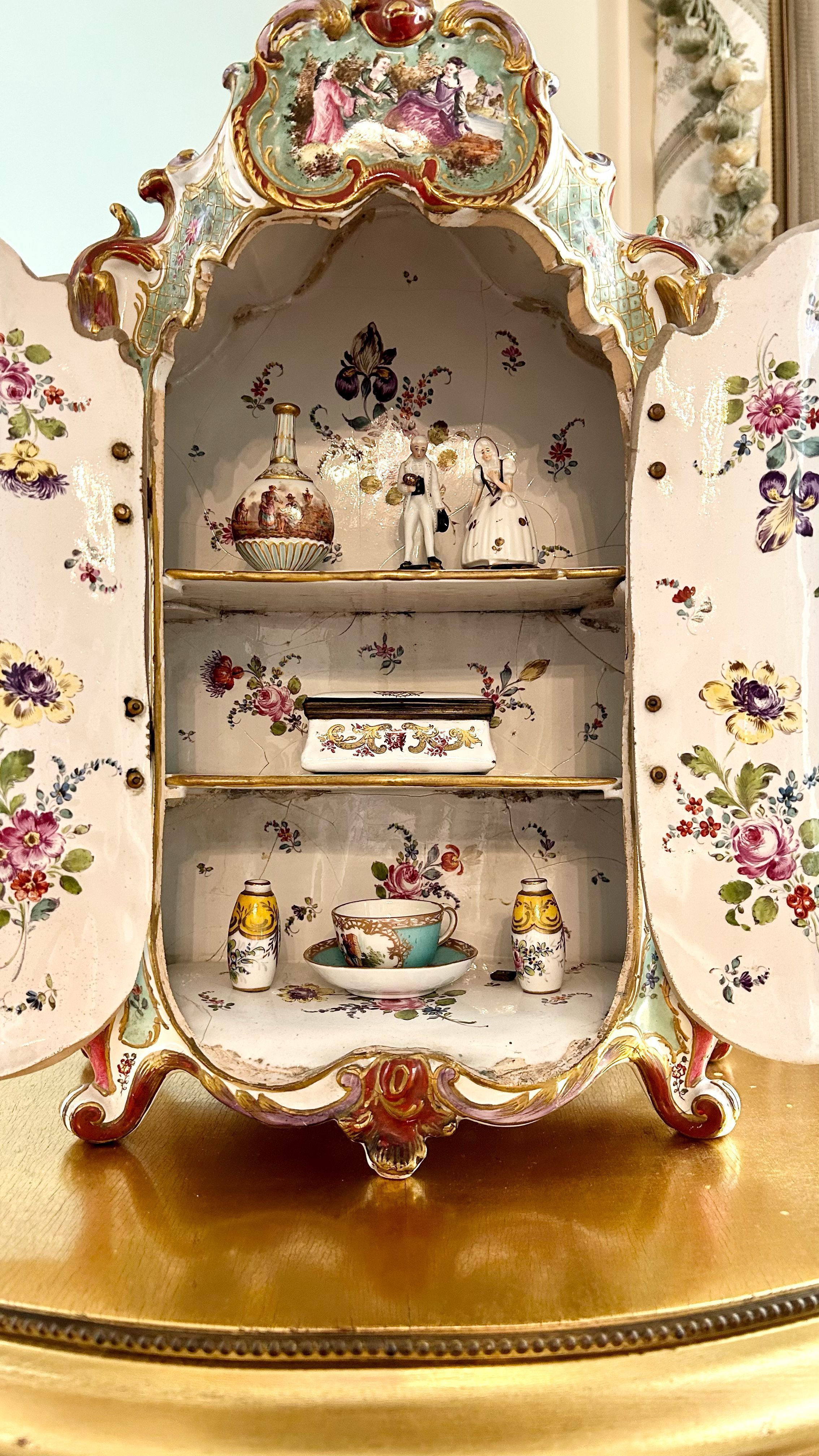 This set of assorted curios features a cup and saucer, 3 miniature vases, and en enamel jewlery box.