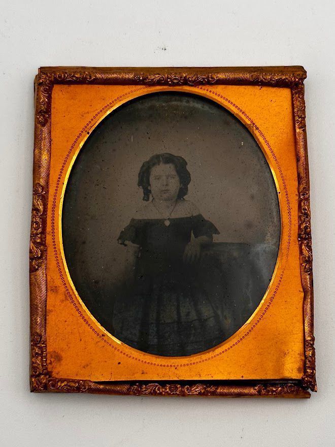 Framed picture of young girl in a black dress with necklace