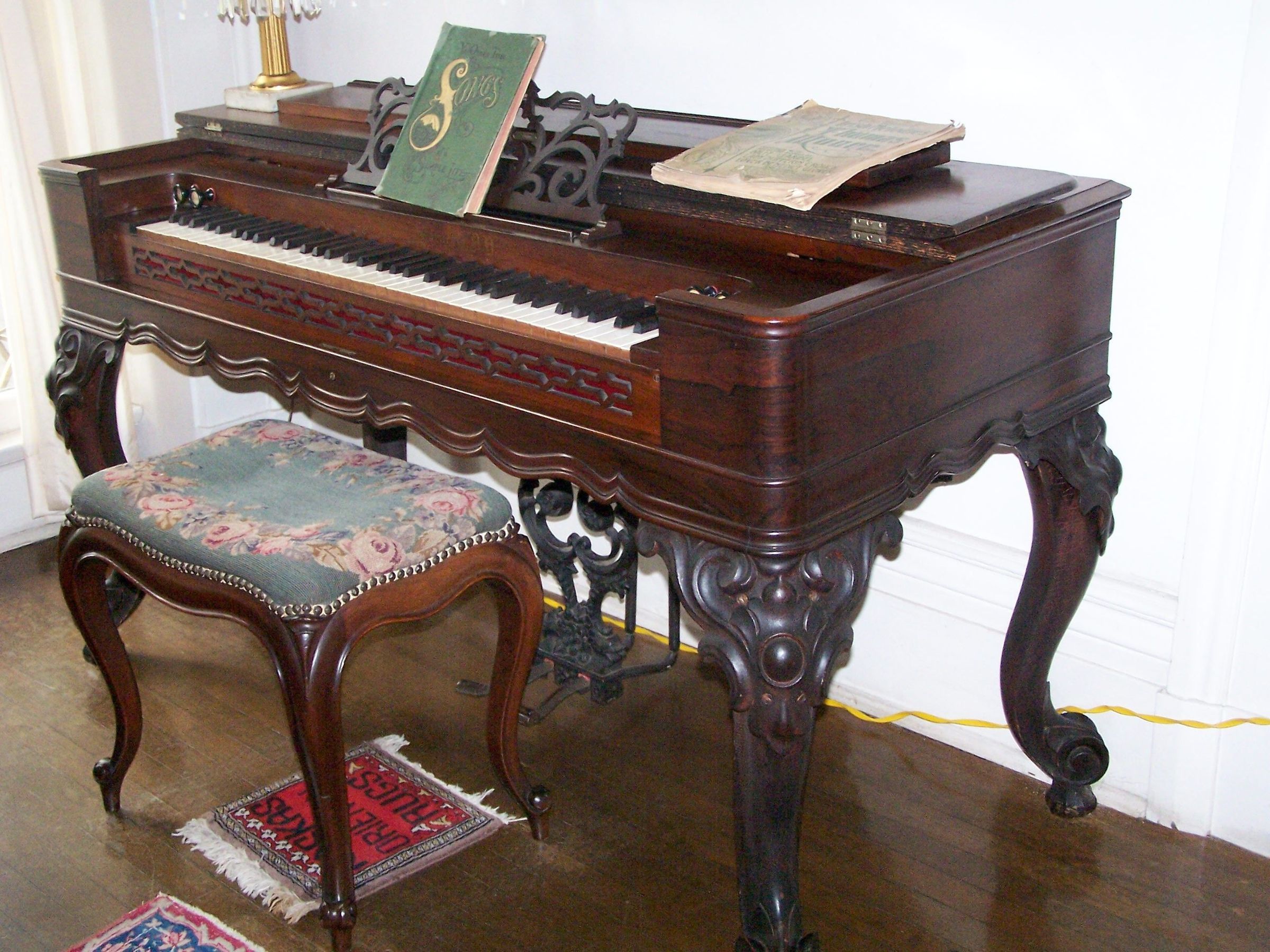 In the southeast corner of the NCHM Front Parlor is a musical instrument called a melodeon. A melodeon is a type of reed organ that generates sound by moving air over internal reeds using a foot-operated bellows.