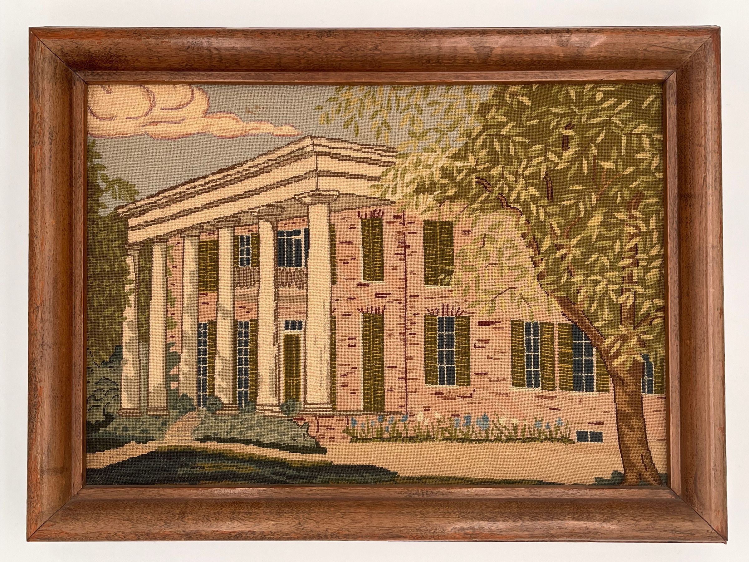 Needlepoint framed image of the Neill-Cochran House Museum created by Frankie Cochran Hill (1891-1973). It is Frankie Cochran Hill that sold the house to the Colonial Dames in 1958.Acquisition