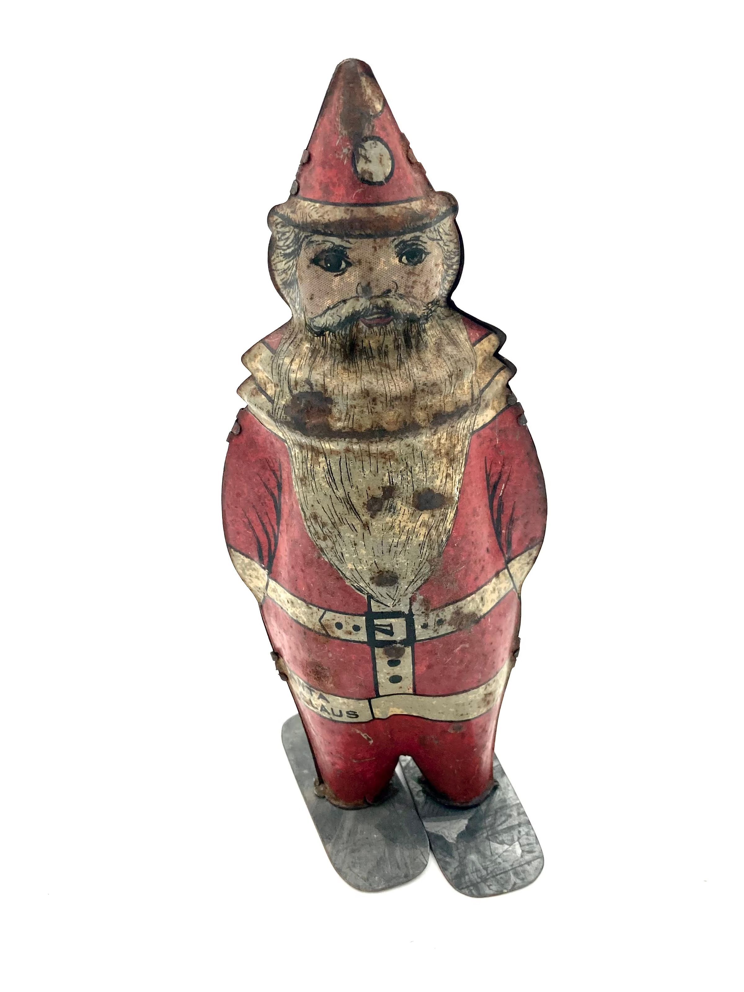 This Santa is a tin wind-up toy. Wind-up toys were first invented in the 18th century, but they became very popular in the 19th century. This one was likely made in the 1920s or 1930s. No doubt a child was thrilled to have this toy to play with a Christmastime.Acquisition