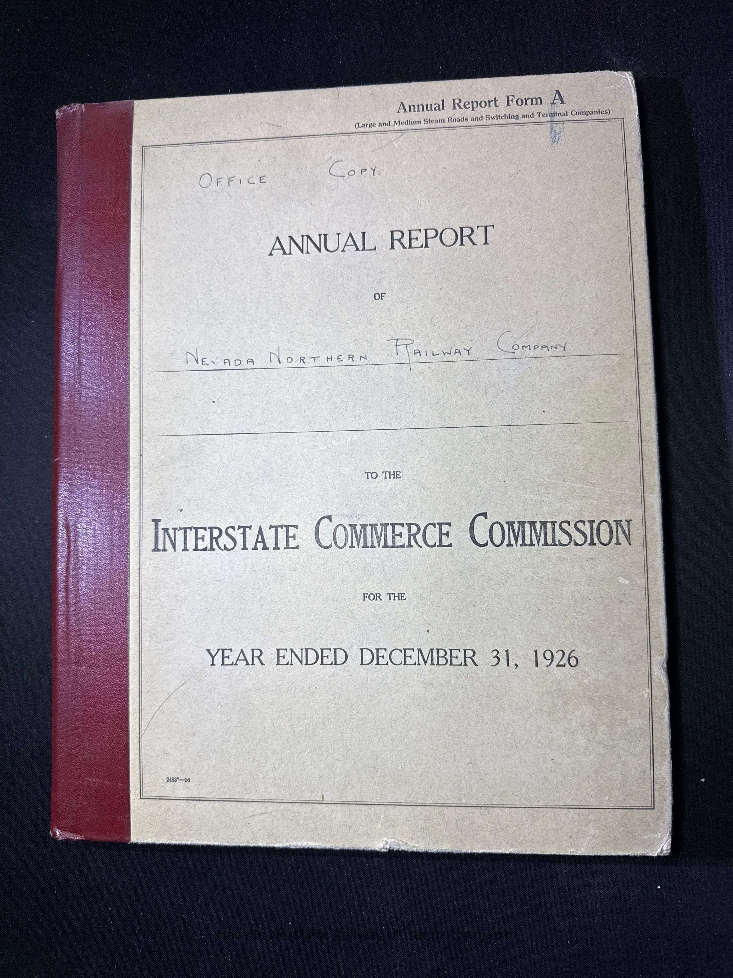 Annual report from the NNRy to the ICC for 1926, includes additional sheet of information between the pages, office file copy for the Auditor's office in East Ely.Creator