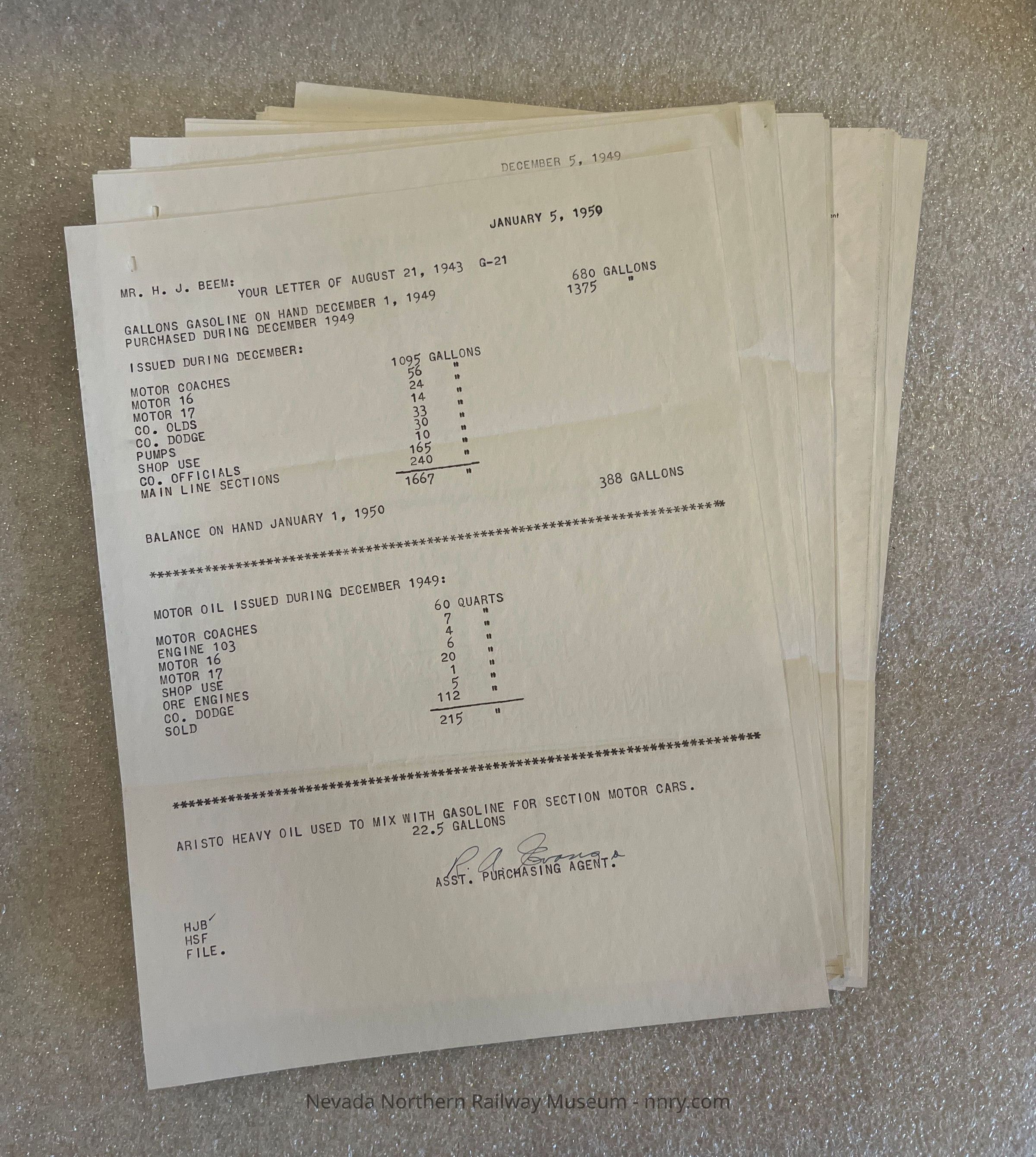 Reports on gasoline usage, 1948-1949.Creator