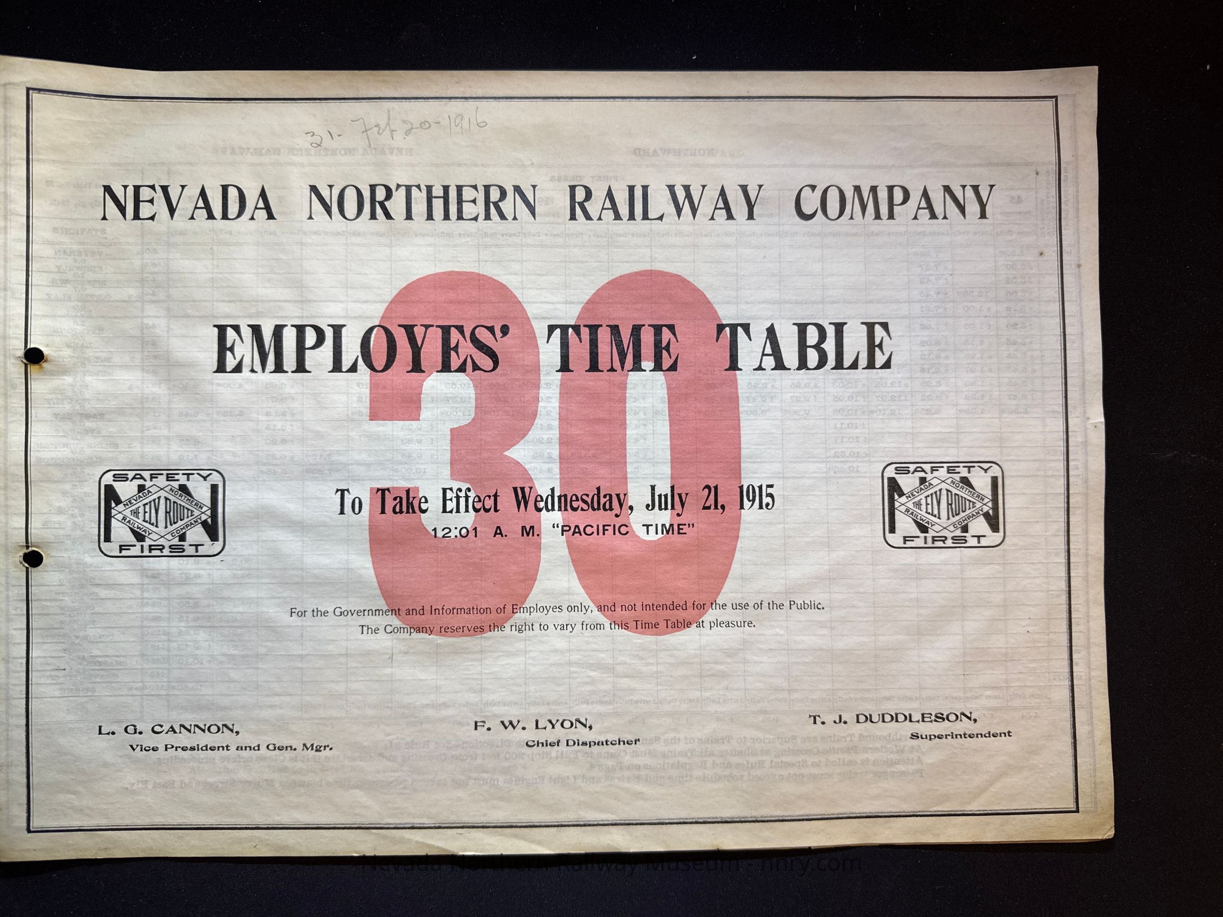 Nevada Northern Railway timetable no. 30, July 21, 1915.