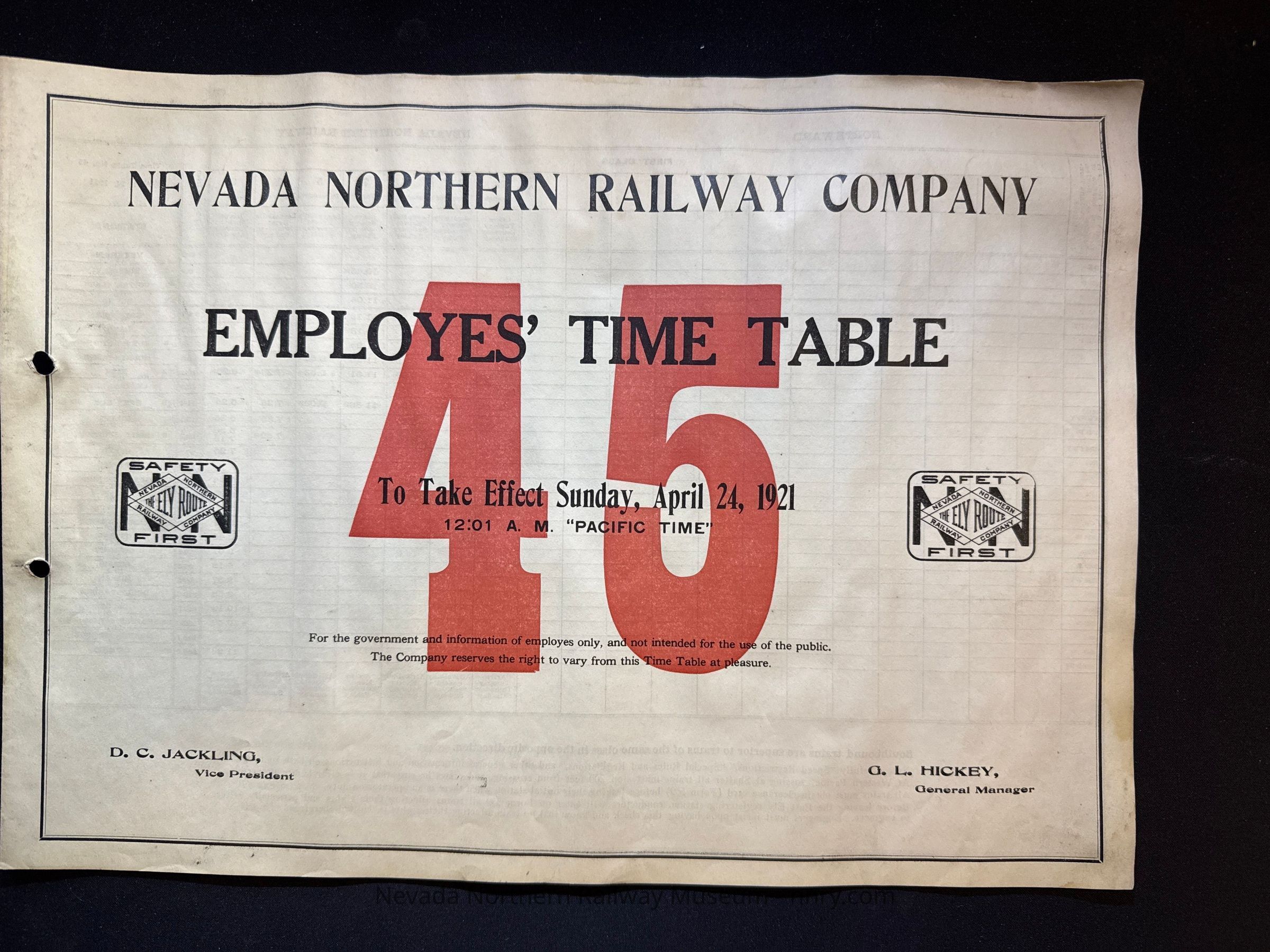 Nevada Northern Railway timetable no. 45, April 24, 1921.