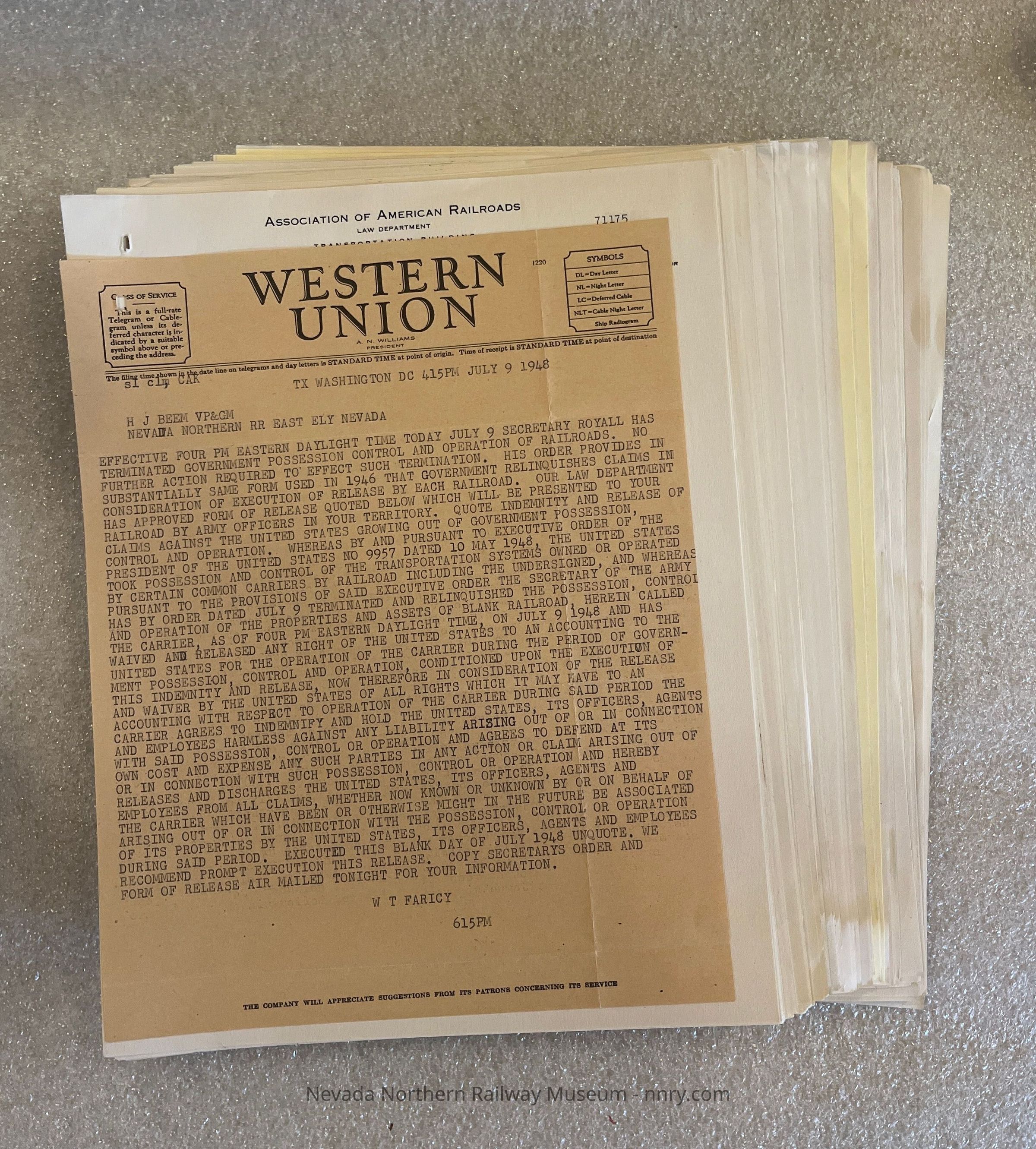 Various correspondence, circulars, etc. regarding government control of the railroads during World War 2, 1948.Creator